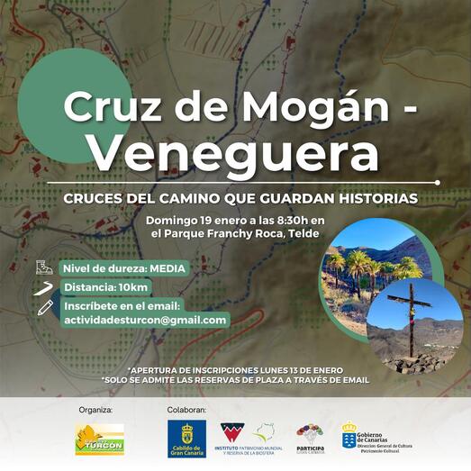 El programa de visitas culturales de Turcón Ecologistas en Acción incluye para el domingo 19 de enero una ruta de la Cruz de Mogán a Veneguera. Una actividad con salida desde Telde, desde el Parque Franchy Roca (8.30 horas) y que aunará etnografía, historia y naturaleza.
