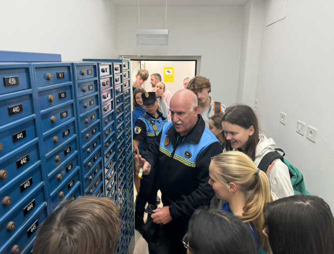 La visita concluyó con una foto conjunta en las escaleras principales de las instalaciones y con un recorrido por la sede de la Policía Local de Telde, a cargo del jefe del cuerpo, Félix Ramos.