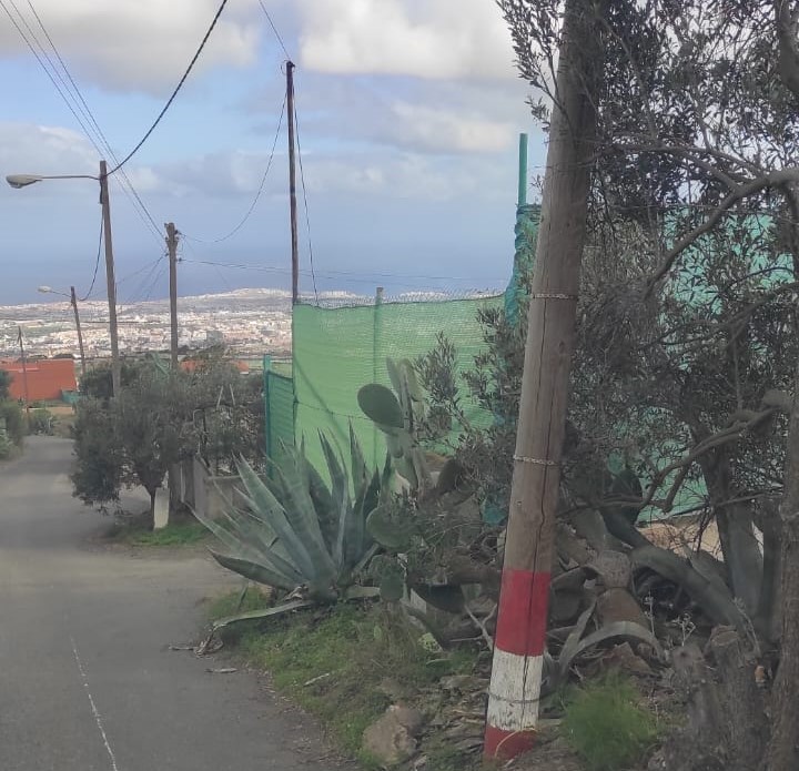 Residentes de Montaña Las Palmas han denunciado el grave estado de algunos postes de luz en la subida a la Finca El Viso. Según los vecinos, uno de los postes amenaza con desplomarse, mientras que otro ya se encuentra caído, lo que supone un peligro para peatones y conductores que transitan por la zona.