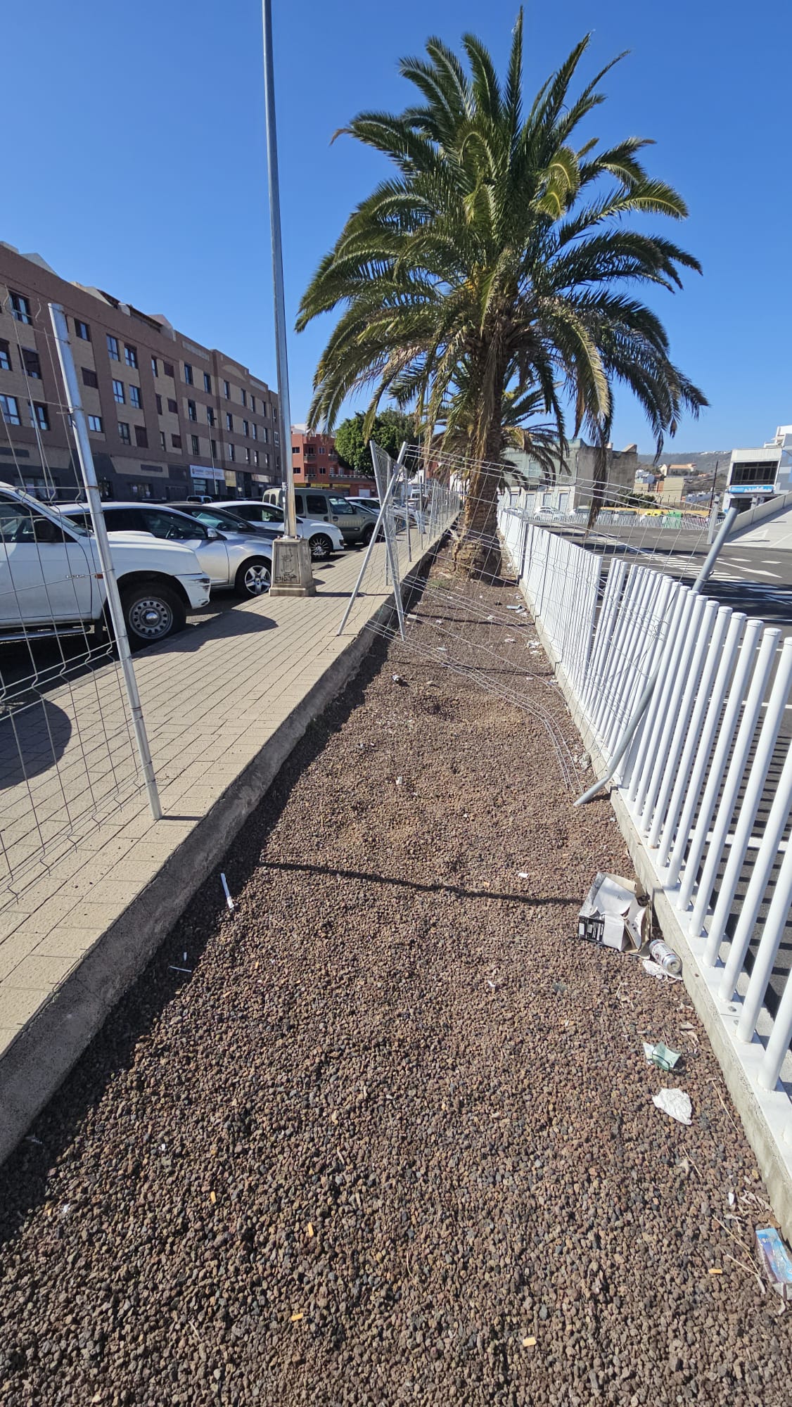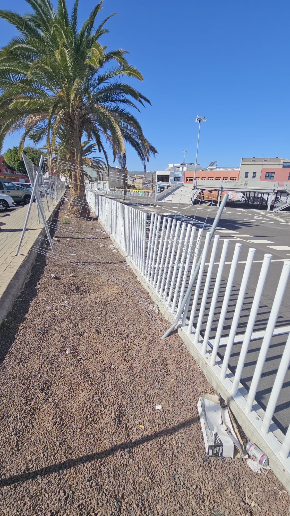 Vecinos de Telde han manifestado su preocupación por el deterioro del vallado metálico de obra que rodea el aparcamiento modular de Arnao, que permanece sin abrir al público. Según denuncian, la rotura de la barretra perimetral lleva más de 15 días sin ser reparada, lo que representa un peligro evidente para los transeúntes y usuarios de este entorno concurrido.