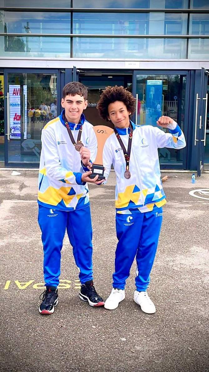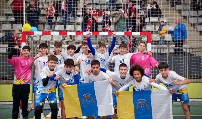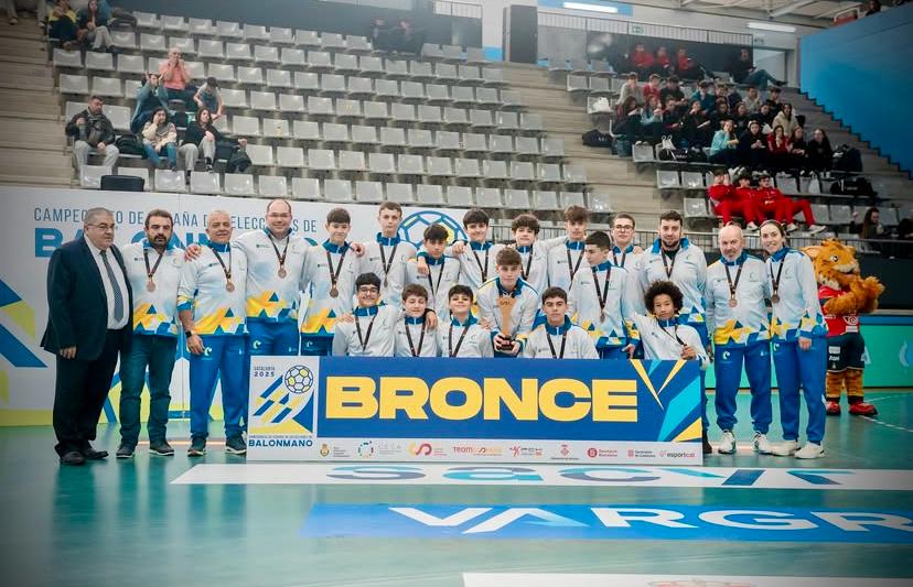 En la categoría infantil masculina, Izan y Derek, jugadores del Unión Balonmano Ciutel, conquistaron la medalla de bronce con la selección de Canarias, un logro que Santana califica de “brillante” y que pone a Telde en el mapa del balonmano nacional.