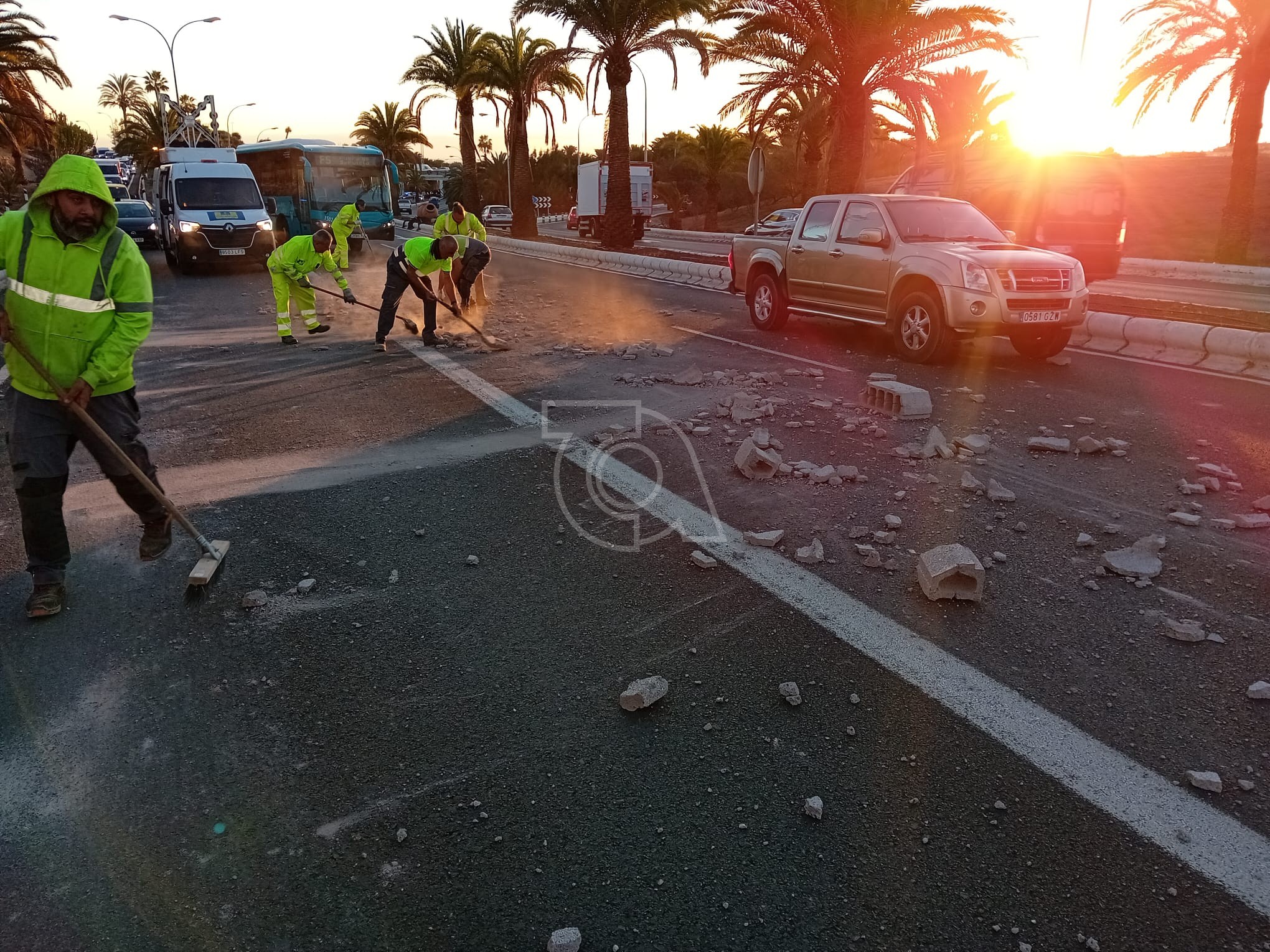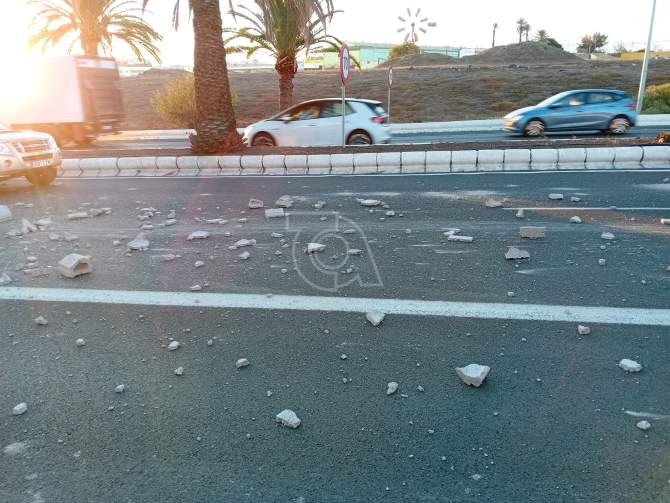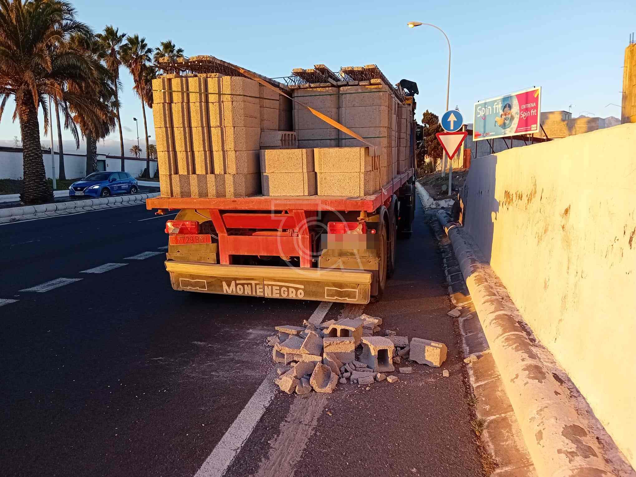 Esta mañana, al filo de las 8.20 horas de este martes, un camión plancha cargado de bloques perdió parte de su carga mientras circulaba por la Avenida del Cabildo (GC-10) en dirección hacia el casco urbano de Telde. El incidente tuvo lugar a la altura de Las Remudas y provocó retenciones en la circulación rodada hasta que fue retirada la mercancía caída del lugar.