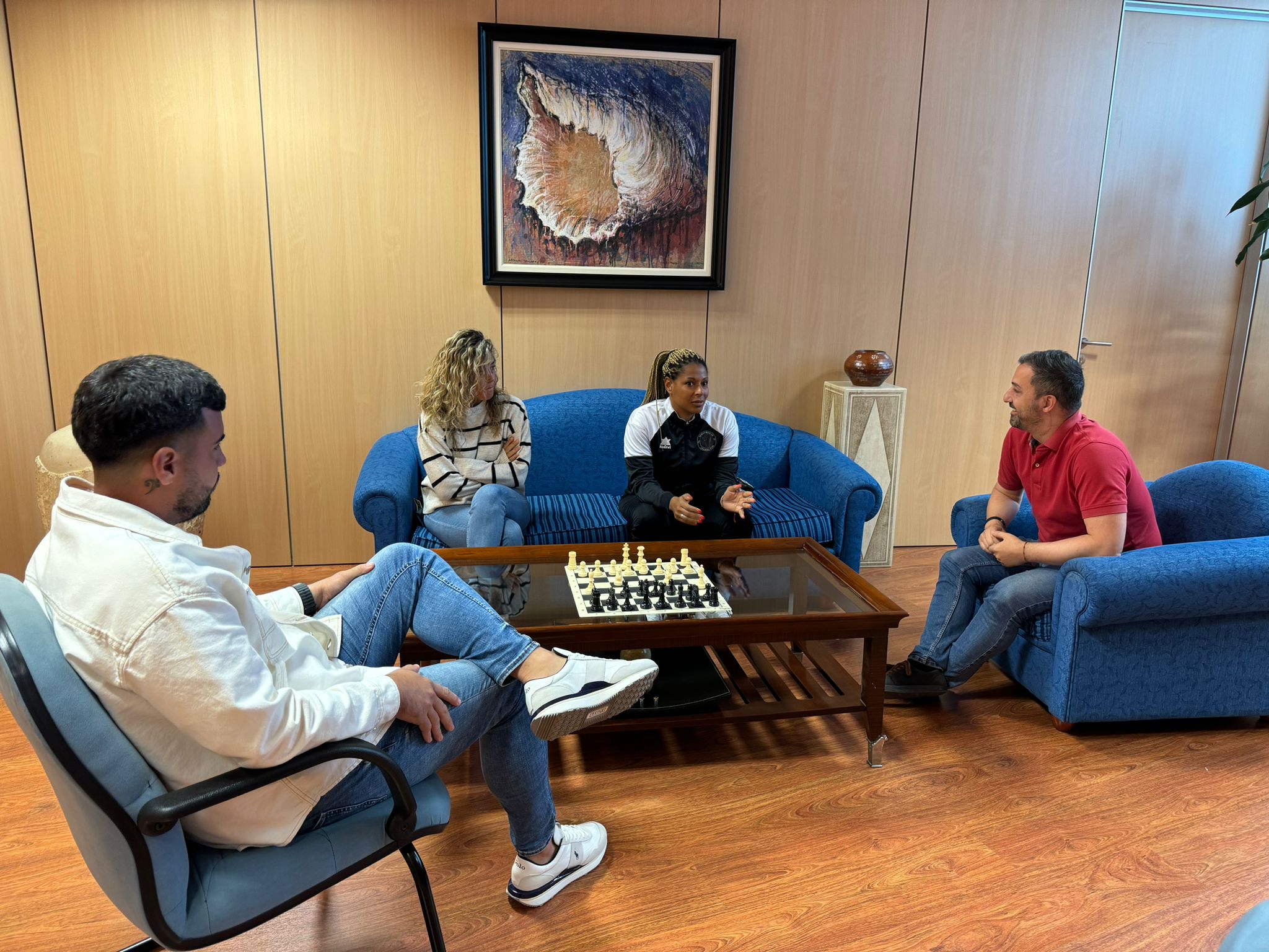 Los representantes municipales trasladaron a la laureada exjugadora del Rocasa Gran Canaria y de la selección Española la felicitación, en nombre de toda la ciudad, por el reconocimiento recibido en los EHF Eccellents Awards 2024.