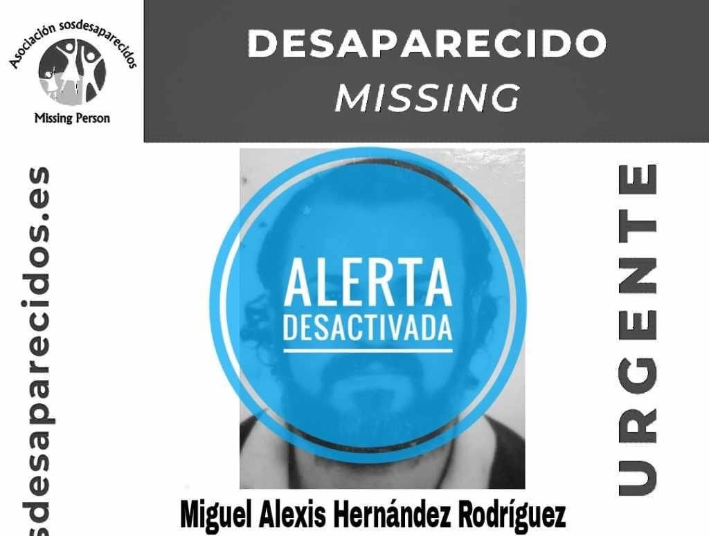 La asociación SOS Desaparecidos ha desactivado este miércoles la alerta emitida ayer por la desaparición de Miguel Alexis Hernández Rodríguez, un hombre de 46 años cuya pista se había perdido el pasado 15 de enero en Santa Lucía de Tirajana, Gran Canaria.