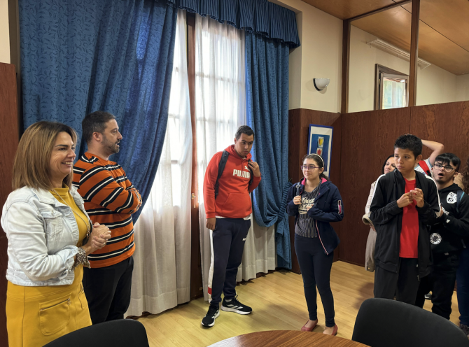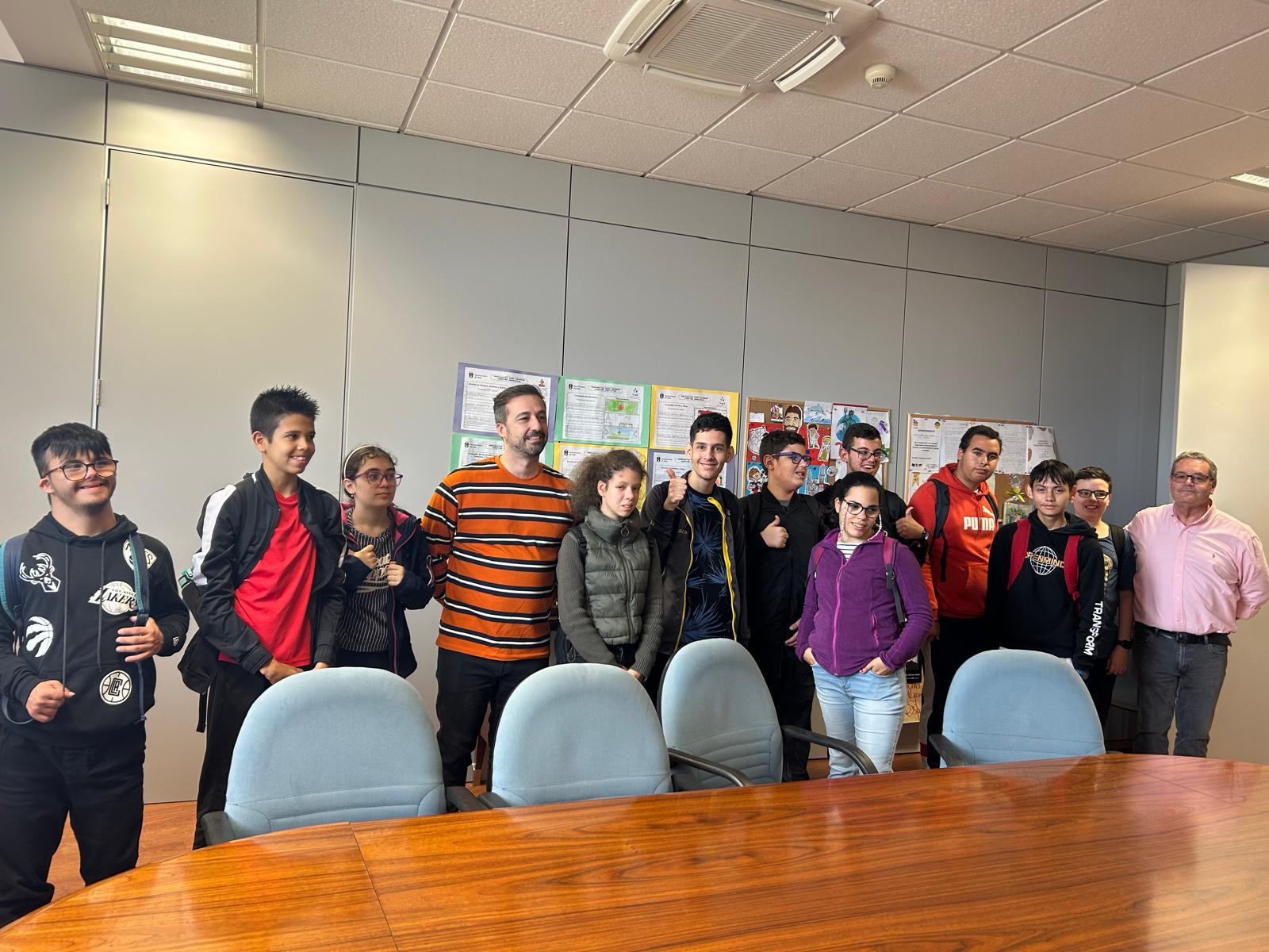 El Ayuntamiento de Telde vivió durante la mañana de este jueves una de sus jornadas más especiales y emotivas hasta el momento, con la visita de los estudiantes de las Aulas Enclave de los IES El Calero, Casas Nuevas y José Arencibia Gil. El alumnado hizo un recorrido, encabezado por el alcalde de la ciudad, Juan Antonio Peña, y el concejal de Educación, Juan Pablo Rodríguez, que les llevó a conocer las Casas Consistoriales, las dependencias de la Policía Local y la sede del Consistorio, en el edificio de El Cubillo.
