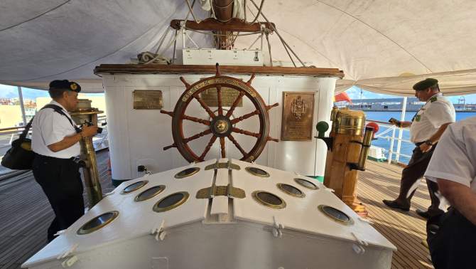La Asociación de Veteranos del Ejército del Aire en Canarias, colectivo con sede en Telde, se desplazó este jueves hasta el Arsenal de Las Palmas para visitar el buque Juan Sebastián de Elcano de la Armada Española, horas antes de que el navío zarpe para atravesar el Océano Atlántico en su 97 crucero de instrucción, una singladura hacia Iberoamérica en la que participa como guardiamarina la princesa Leonor de Borbón.