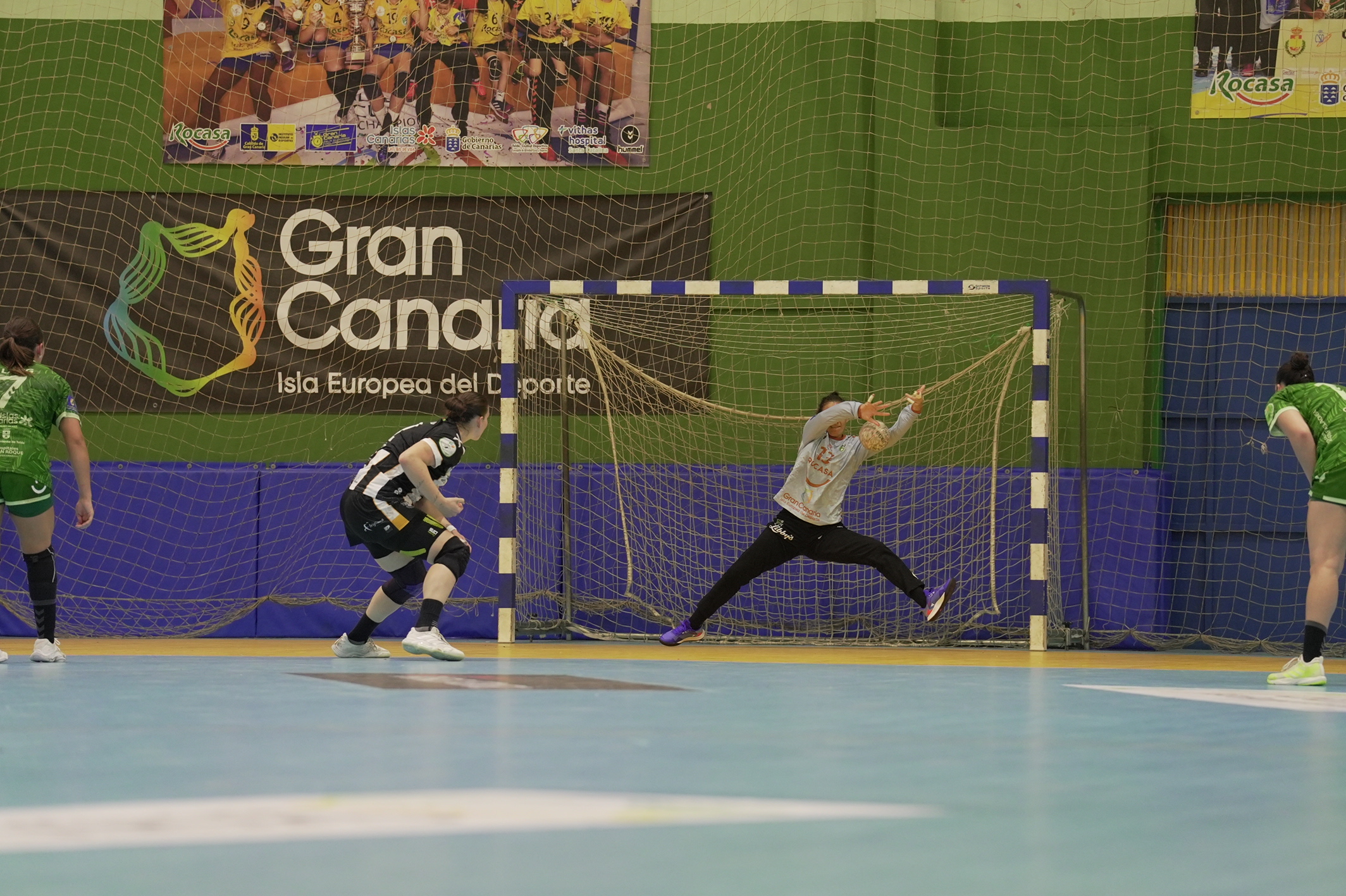 Pese a unos primeros instantes en los que el Rocasa logró una mínima ventaja, la igualdad se mantuvo hasta el descanso, al que ambos equipos llegaron con un ajustado 11:11 en el luminoso. Este marcador parcial evidenciaba el equilibrio de fuerzas sobre la pista, con dos defensas que supieron replegarse a tiempo y un acierto ofensivo que, aunque notable, se topó en repetidas ocasiones con las excelentes intervenciones de las porteras. Para las grancanarias, su destacada estructura defensiva continuaba siendo la clave para no descolgarse, a pesar de no encontrar la frescura de cara a gol que habían exhibido en otros encuentros.