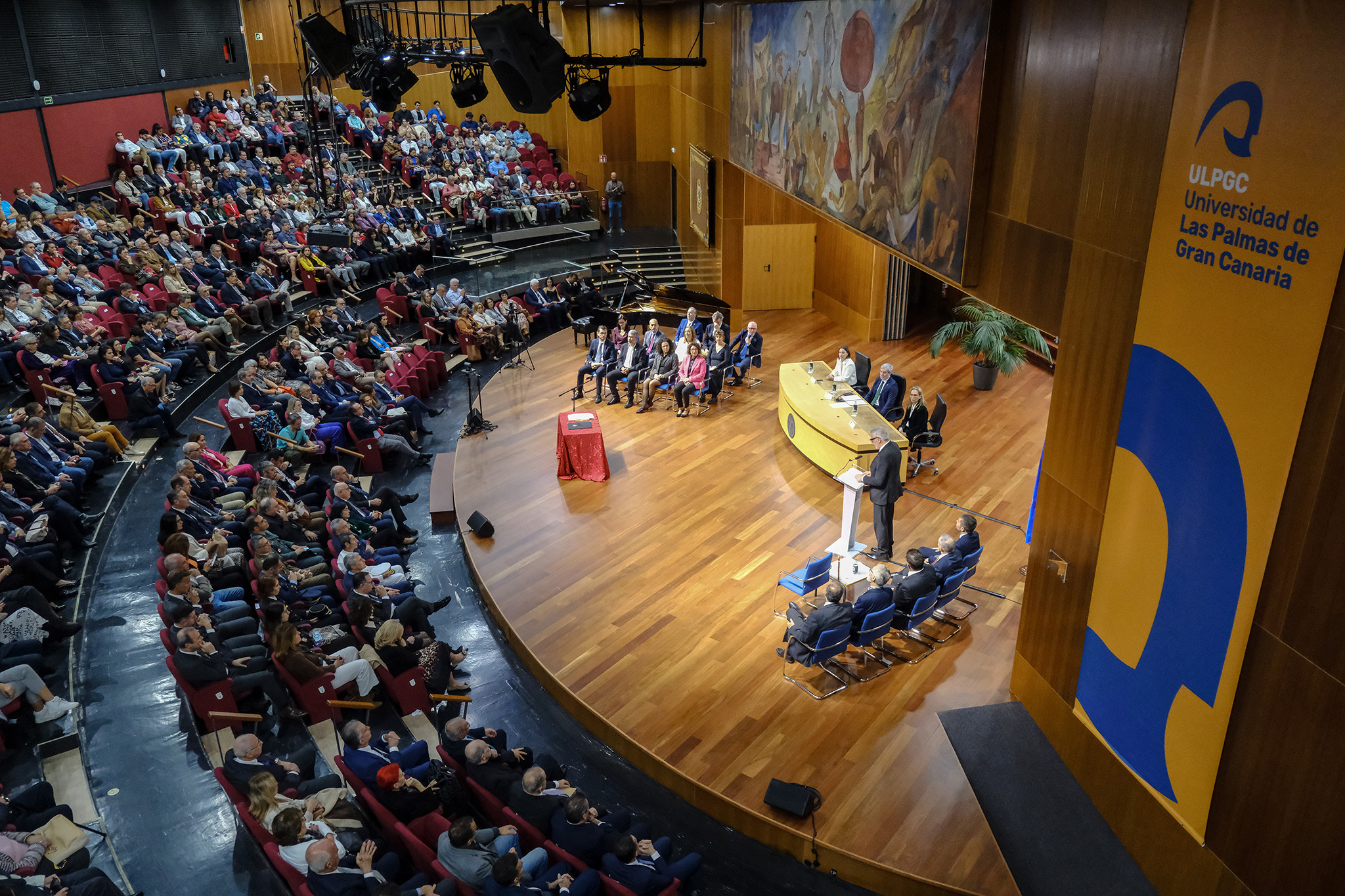 En su discurso, el Rector expuso los seis grandes retos que, a su juicio, son cruciales en la ULPGC. “La financiación el primero”, destacó. “En los últimos 15 años el presupuesto de la comunidad autónoma ha crecido casi un 12%, y el de la ULPGC ha bajado casi un 2%. La financiación adecuada es crucial para el éxito y el desarrollo de nuestra universidad. Una universidad bien financiada se convierte en un motor de cambio y progreso, contribuyendo decisivamente al desarrollo social y económico de nuestra región”.