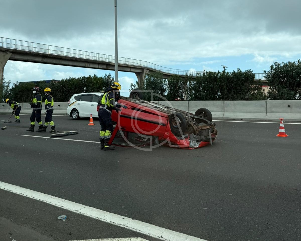 Este lunes, 3 de febrero de 2025, a las 11:45 horas, se registró un accidente de tráfico en la autovía GC-1, en sentido sur, a la altura del municipio de Telde. Un vehículo volcó tras impactar contra la mediana, dejando como resultado dos heridos de carácter moderado.