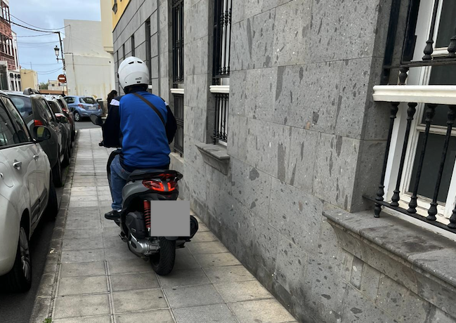 Vecinos de Telde denuncian el insólito comportamiento de un motorista que días atrás circuló por una acera en el barrio de San Juan, en la calle Doramas. "¡Lo que faltaba por ver!", se lamentan.