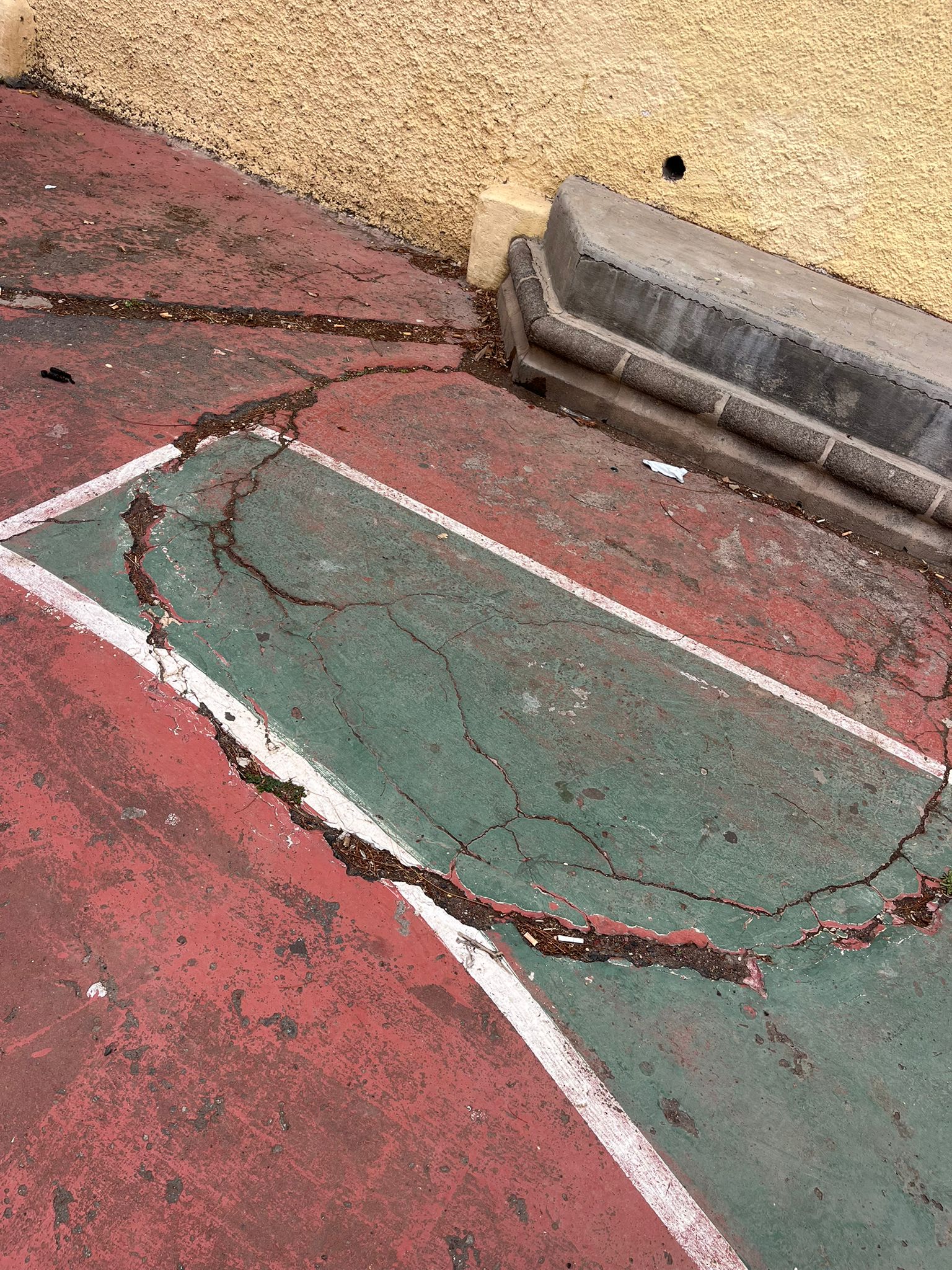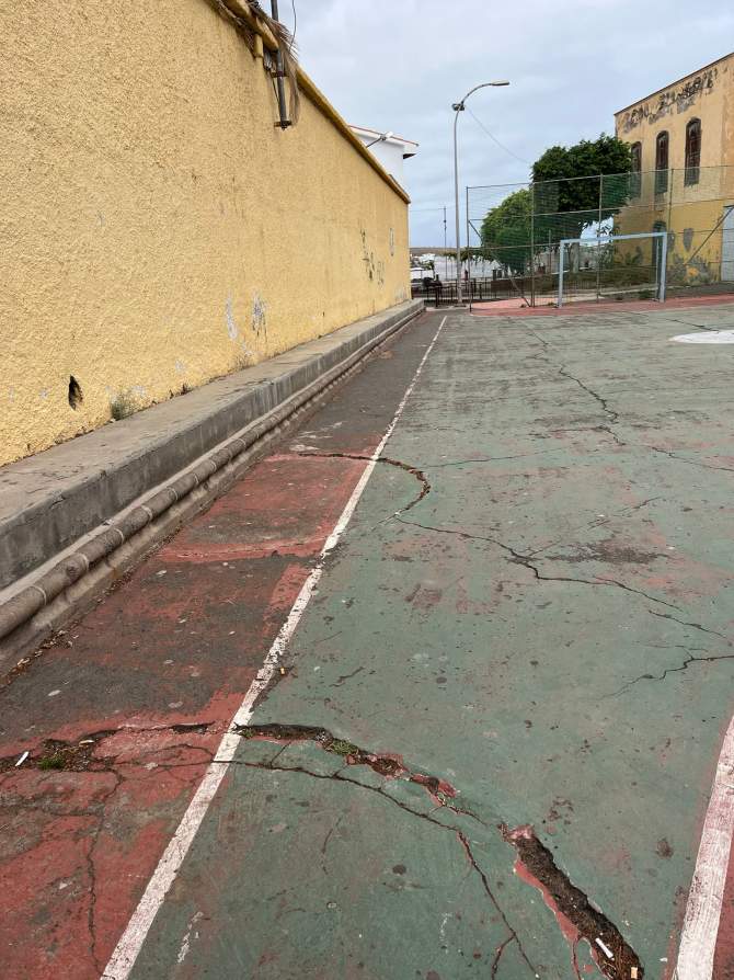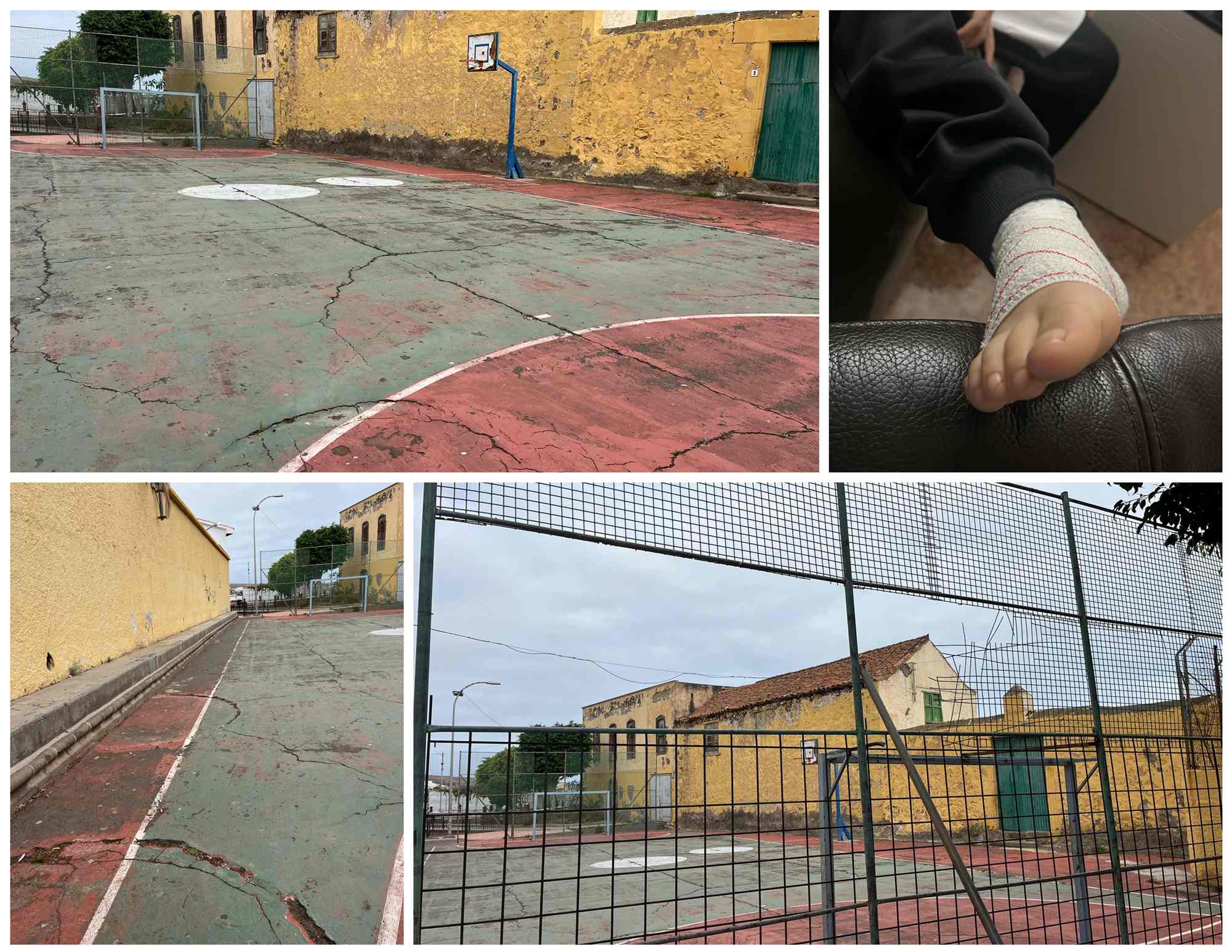“La cancha está llena de socavones y en un estado deplorable. No entendemos cómo el Ayuntamiento permite que siga abierta cuando representa un peligro real para quienes la utilizan”, manifiestan los residentes afectados.