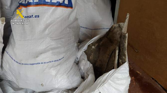 Además, al inspeccionar el furgón, la Guardia Civil halló un total de 42 sacos de escombros rellenos de fragmentos de paneles de fibrocemento ondulados con amianto, de unos 25 kg de peso, aproximadamente, cada uno.