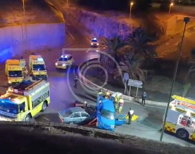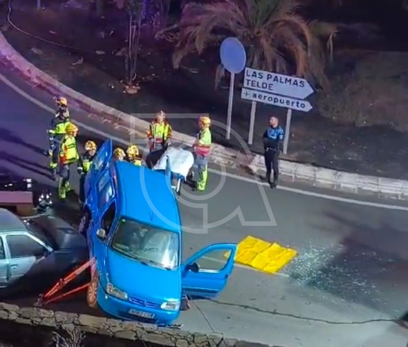 En la madrugada de este martes, sobre las 00.10 horas, un grave accidente de tráfico en la GC-116, en la rotonda de acceso al Centro Comercial La Mareta, dejó un saldo de cuatro personas heridas.