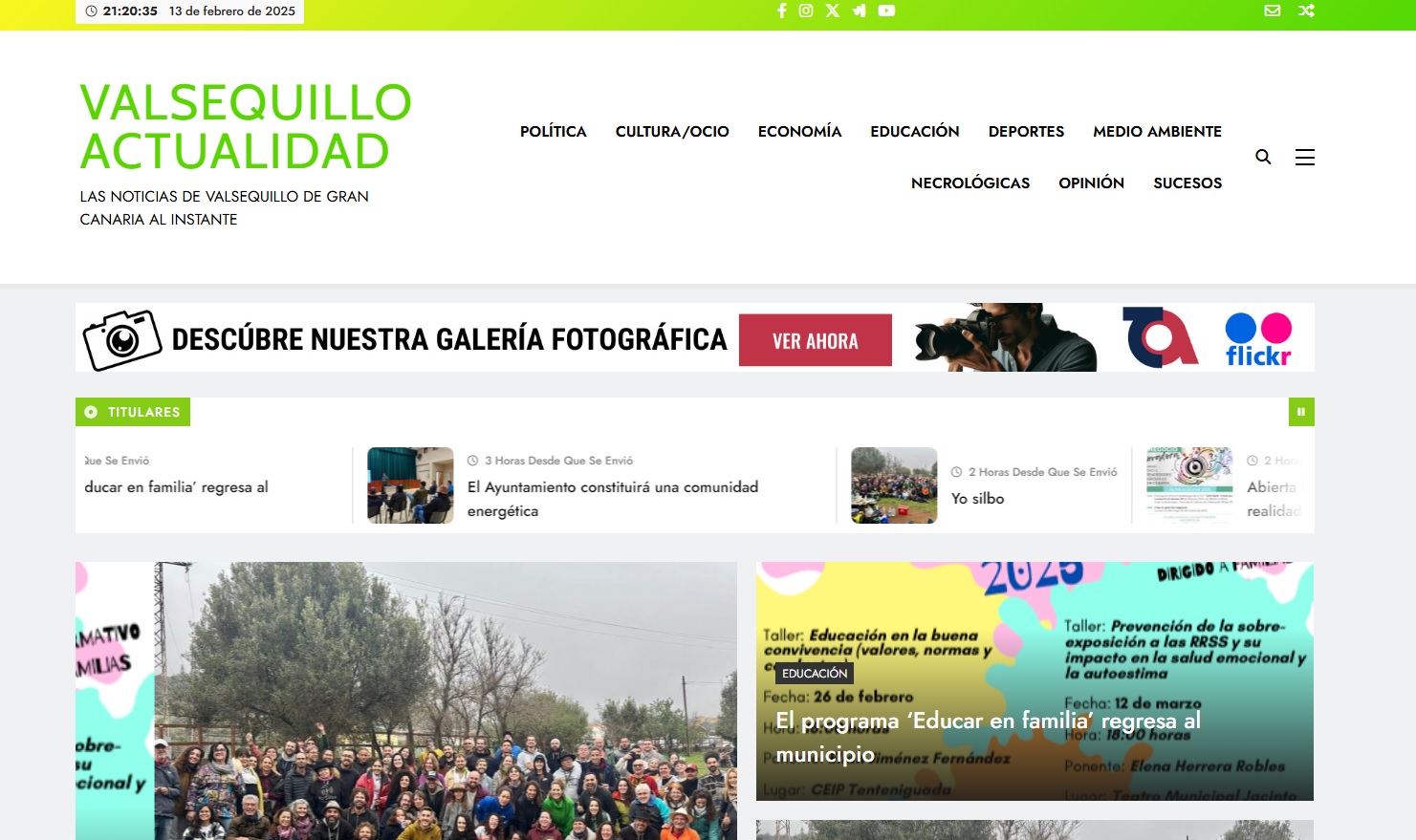 La empresa TELDEACTUALIDAD PRESS SL, responsable de los diarios TELDEACTUALIDAD y REVISTA TARA, ha lanzado este jueves un nuevo periódico digital: VALSEQUILLO ACTUALIDAD. Coincidiendo con su 20 aniversario, el grupo amplía su presencia en el panorama informativo canario con este nuevo medio, al que se puede acceder a través de las direcciones www.valsequilloactualidad.es y www.valsequillohoy.com.