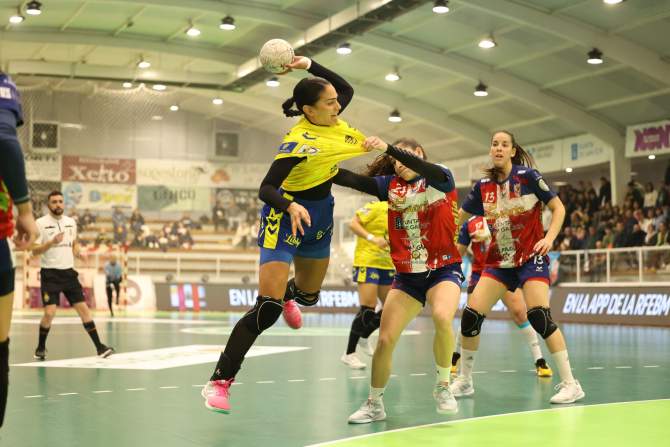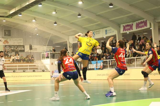 Imagen del encuentro de este sábado/Sportcoeco.El Rocasa Gran Canaria no pudo llevarse los puntos de la cancha del líder, el Mecalia Atlético Guardés, cayendo por 21-19 en un encuentro en el que las isleñas llegaron a remontar parte de una desventaja de hasta siete goles. Pese a la derrota, el equipo de Carlos Herrera mantiene la 6.ª posición con 19 puntos, beneficiado por la derrota de uno de sus perseguidores directos, el Caja Rural Aula Valladolid.