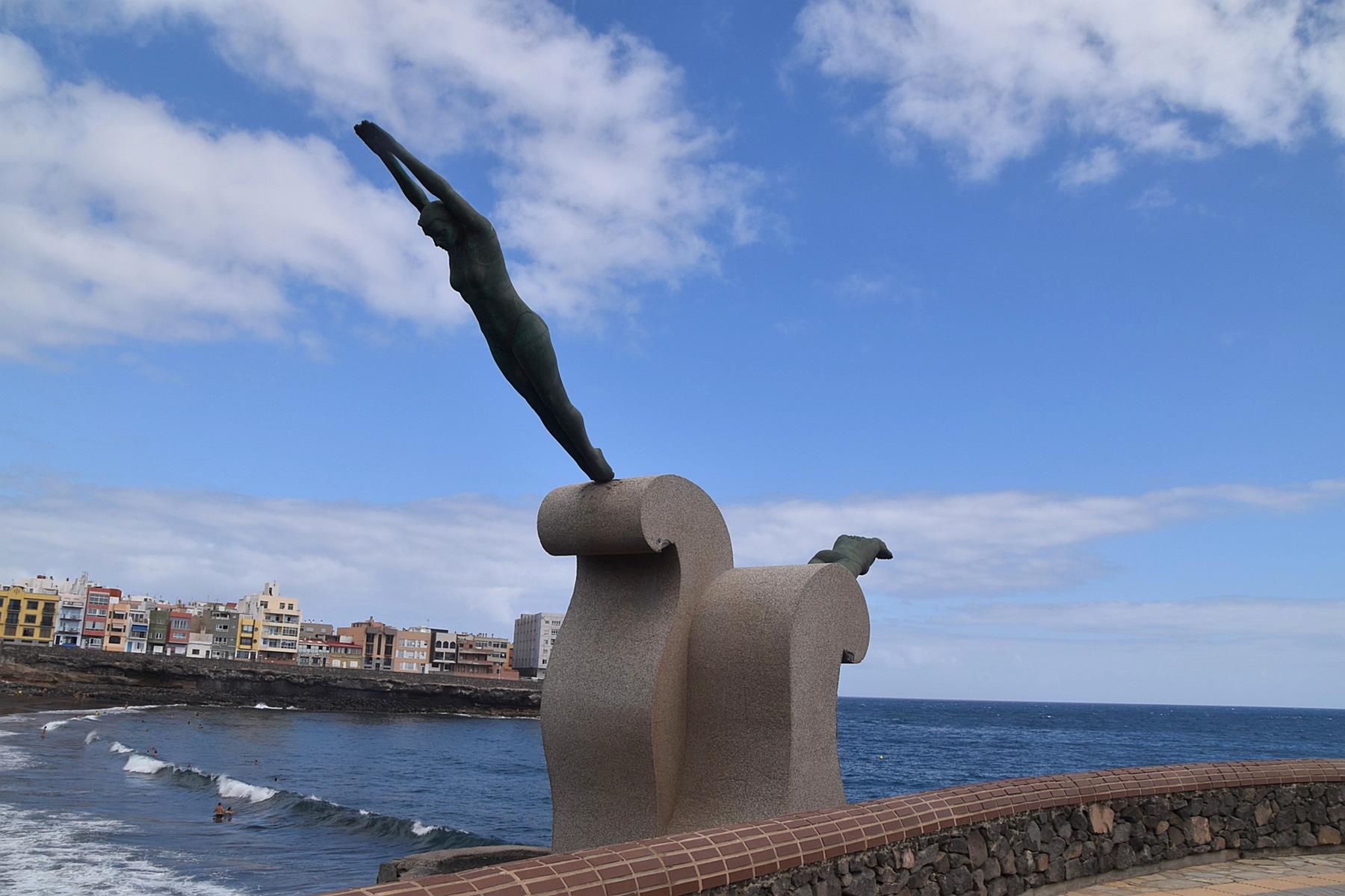 Muy bonita la estatua la verdad, la pena es que está situada en una avenida sucia y llena de caca de perros. También es que al final de dicha avenida en Hoya del Pozo donde el parque de niños, comienza un desastre de aceras rotas,y carreteras destrozadas, que continua por playa del hombre hasta el final de éste. Las personas mayores, niños y no tan mayores se ven obligadas a no quitar la mirada del suelo en caso de caída. Lo más triste es que hay varios usuarios en sillas de ruedas de la Garita que se ven frustrados y limitados al no poder pasear hasta Melenara por la situación de dicha avenida. Muy triste y feo todo la verdad. Y los turistas vienen a Telde a ver aceras Rotas y avenidas sucias.