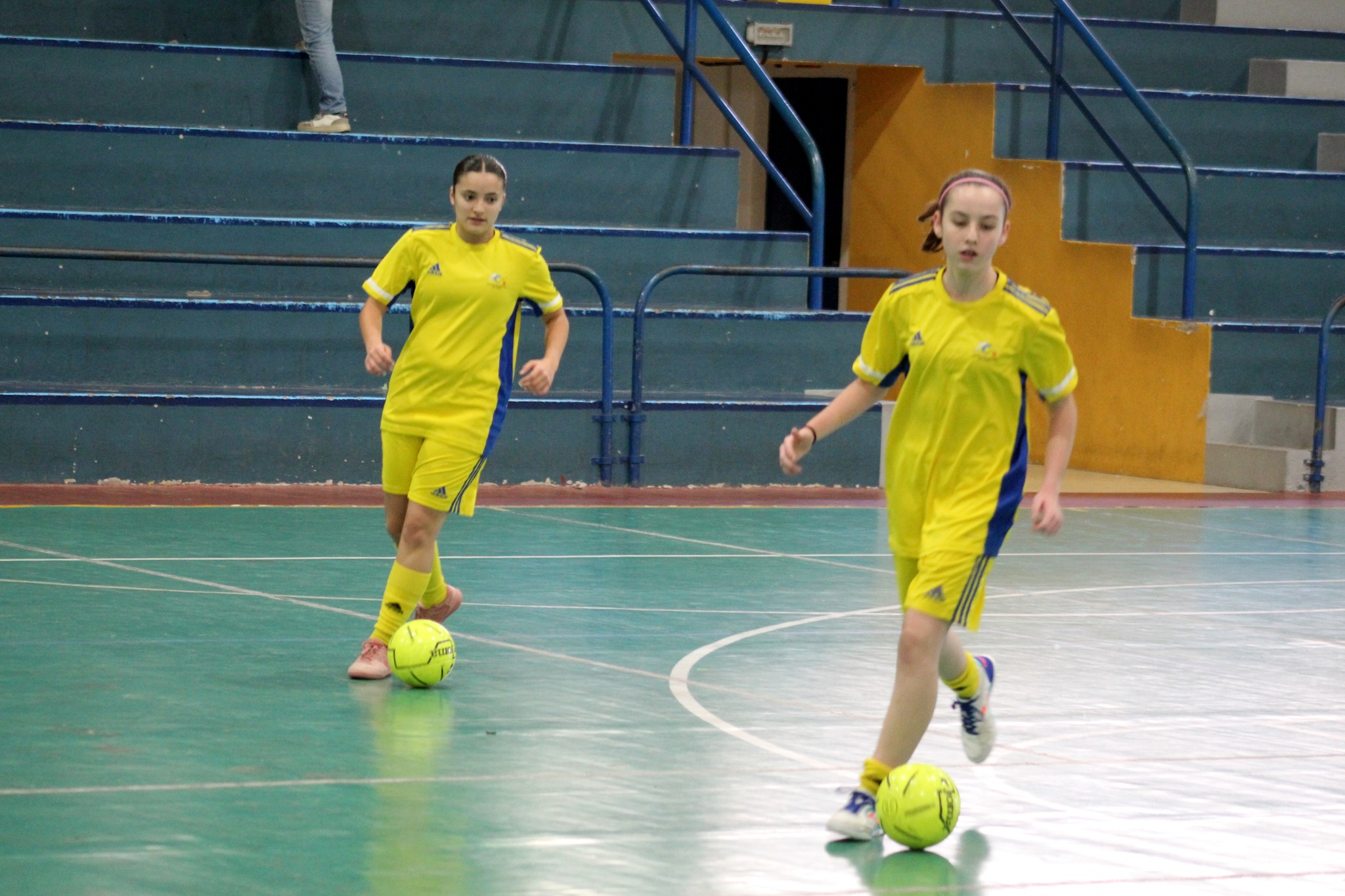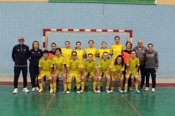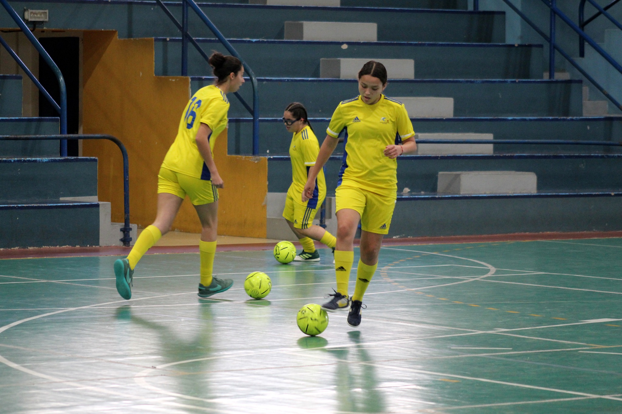 El concejal de Actividad Física y Deportes del Ayuntamiento de Telde, Cristhian Santana Caballero, felicita a las tres jugadoras del filial del Gran Canaria Teldeportivo, Judith Suárez Navarro, Sofía Isabel Pardo Rodríguez y Nerea Moro Sánchez, que han sido incluidas en la convocatoria final de la Selección de Canarias de fútbol sala sub-19 para disputar el Campeonato de España de Selecciones Autonómicas.