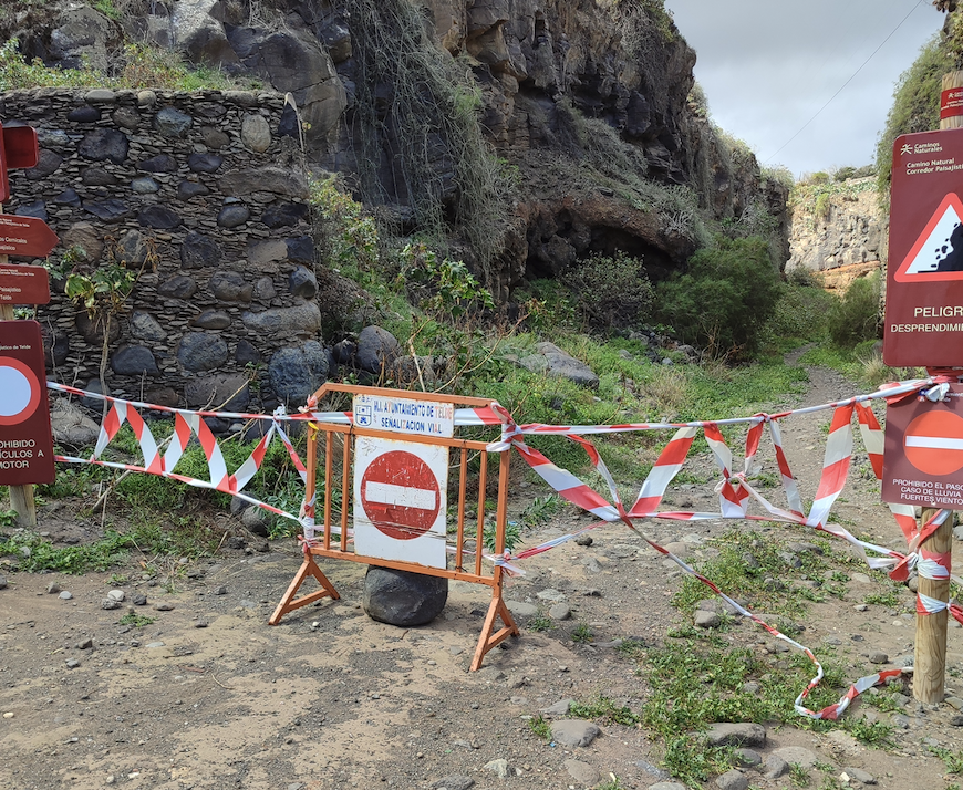 "El Ayuntamiento de Telde, en algún momento, supongo que por algún temporal cerró en Corredor Paisajístico de Telde y se olvidó recoger las vallas y cintas del barranco", explica este teldense que aprovecha para agradecer a un joven que este pasado miércoles se dedicó a recoger latas y otras basuras que estaban abandonadas en plena naturaleza.