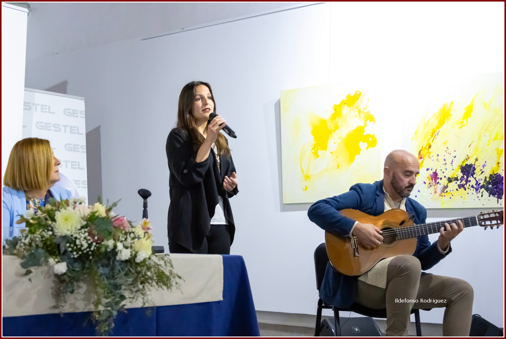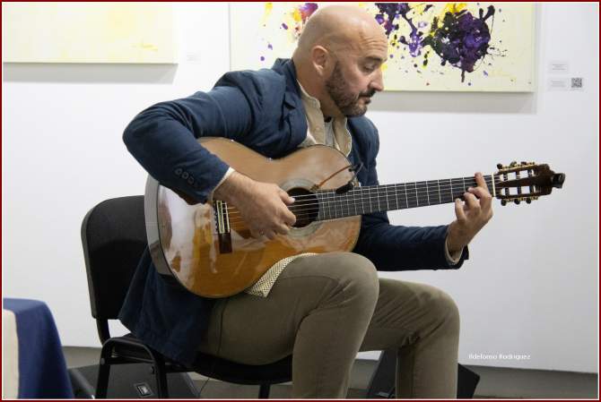 El concertista de guitarra Gonzalo Macías Sosa, compositor y arreglista, cofundador del Grupo Araguaney y fundador y creador del grupo Amidis con el que sacó a la luz varios CDs. En 2015 grabó su primer álbum en solitario llamado Alma, corazón y guitarra, es creador de proyectos musicales y procreador del proyecto literario Versos pulsados, colaboración para esta presentación que agradece Guadalupe Santana, recitando un poema de su producción con el título, De improviso. Gonzalo interpreta cuatro bellas composiciones, Inspiración (tema brasileño), otros dedicados a Canarias, que con su maestría instrumental dibuja el acento musical para seguir el latido lírico de los poemas recitados.
