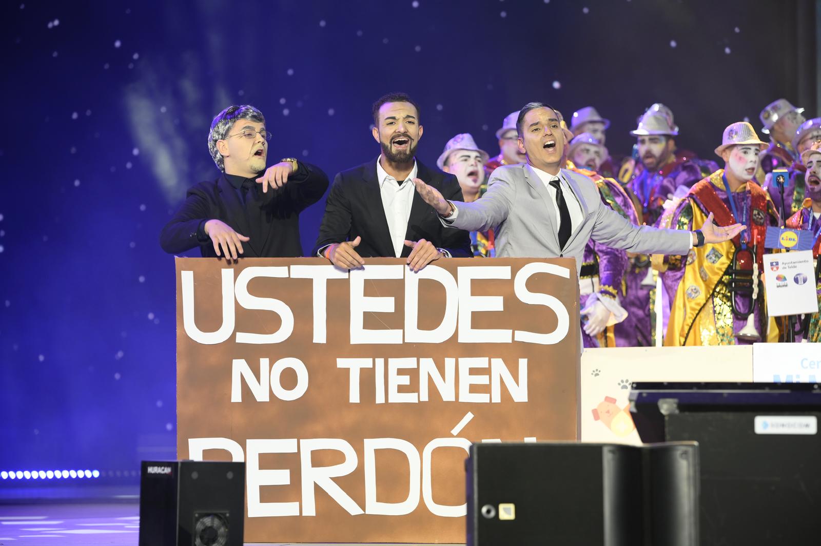 Además, Isidro Morales, de Melindrosos, ha sido distinguido con el Premio Definitivamente Yo, Los Serenuenquenes han conseguido el Premio Carmelo ‘El Pariente’ y Los Legañosos se ha llevado el Premio El Criticón. Todo, para cerrar una larga velada de murgas y un no menos intenso concurso (con tres fases previas, celebradas el lunes, el martes y el miércoles), patrocinado íntegramente por la firma Lidl.