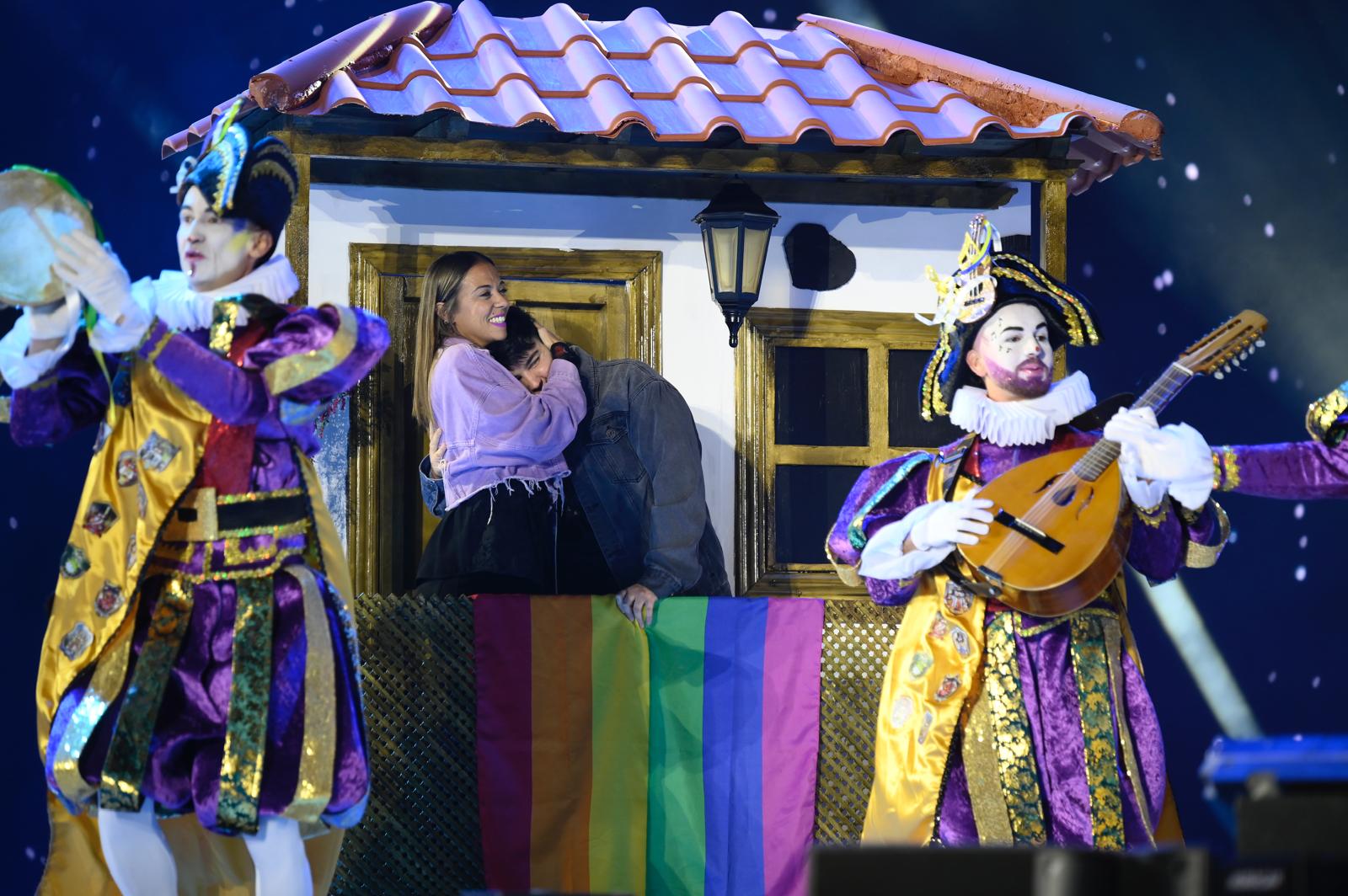 Los Gambusinos tomaron el relevo en el escenario, con toda la ilusión del mundo, desde Puerto del Rosario (Fuerteventura). Ellos han sido uno de los grandes animadores de la fiesta en la capital grancanaria en estas últimas ediciones, después de debutar por todo lo alto en 2022, consiguiendo el primer premio de interpretación. No han perdido esa chispa.