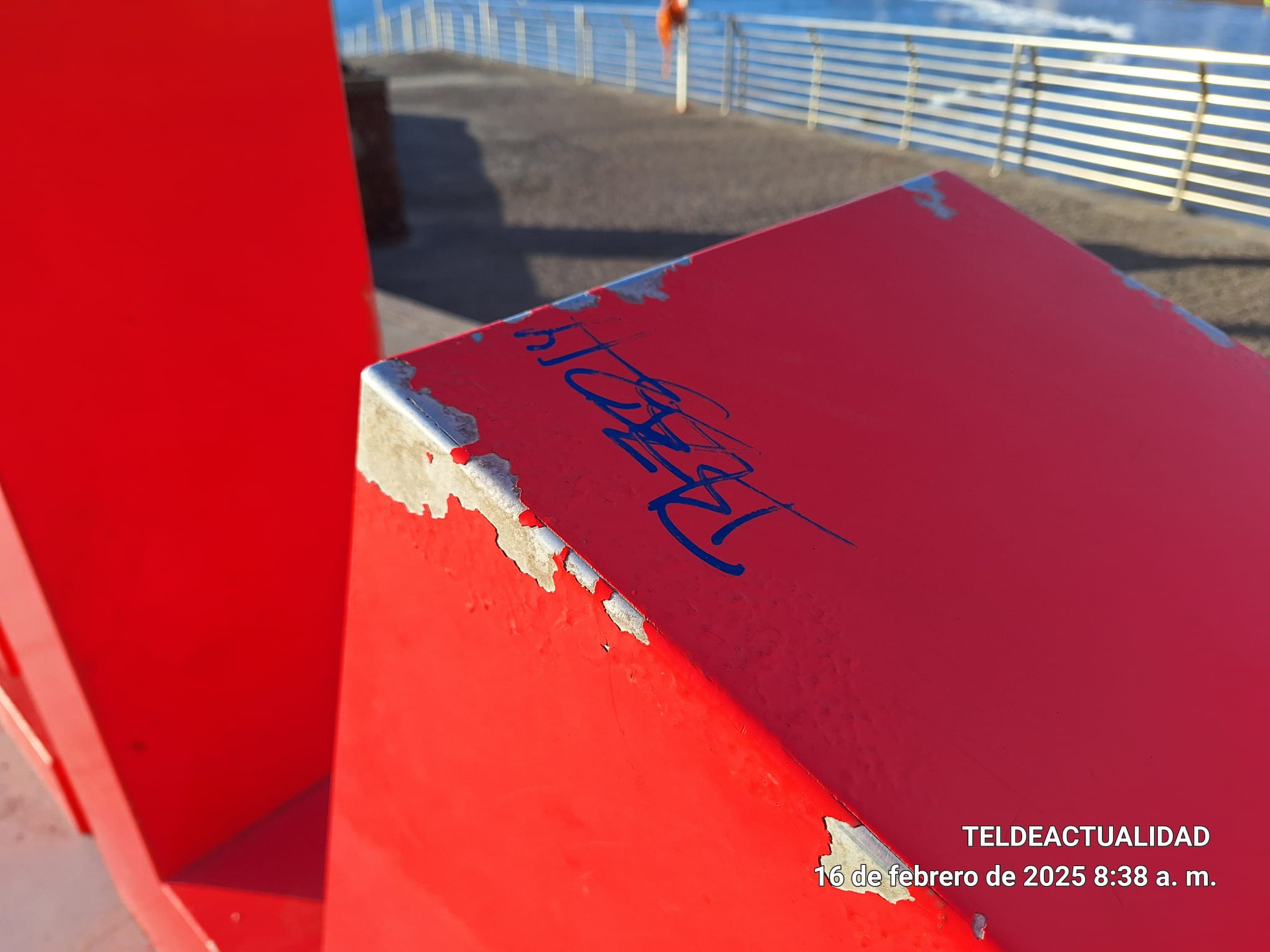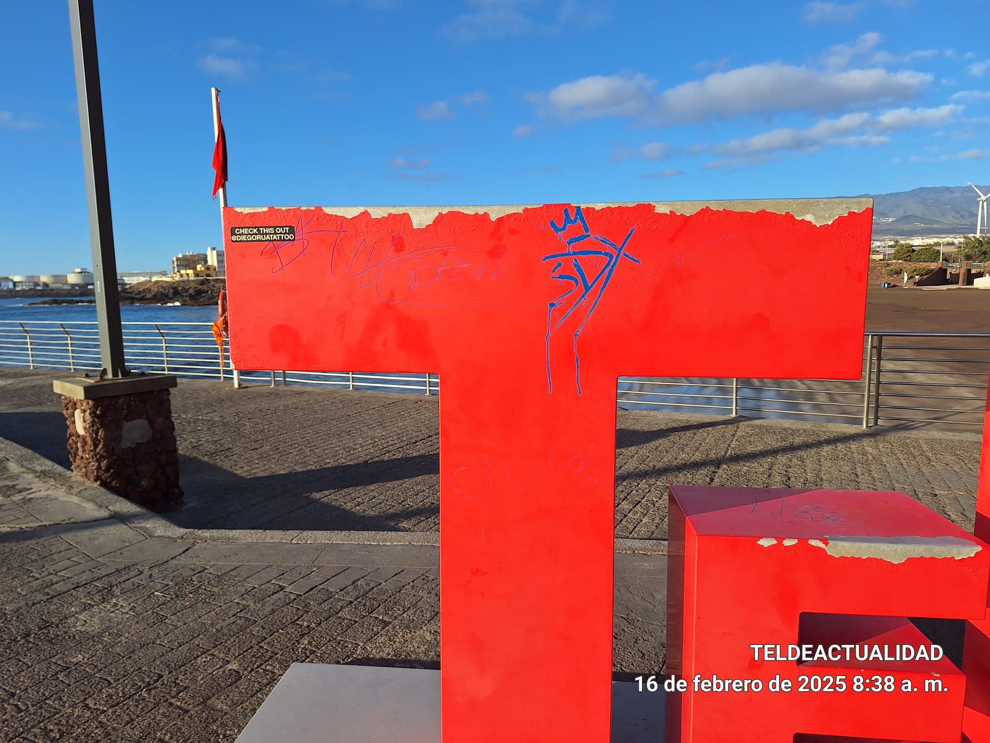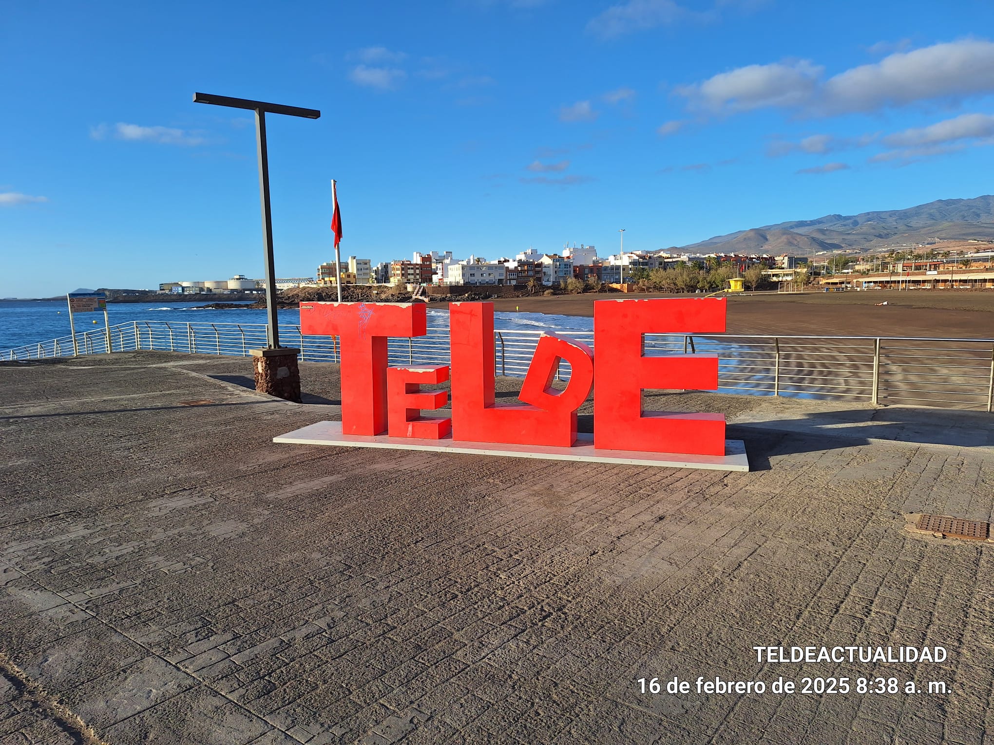 El elemento, de un metro y medio de alto por cinco metros de largo, y con las cinco letras que conforman la palabra Telde, se instaló en el año 2021 en uno de los enclaves más emblemáticos de la costa del municipio, en el viejo muelle pesquero, cerca de la escultura de Neptuno.