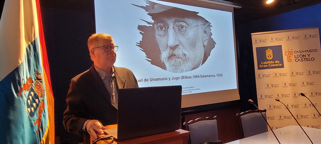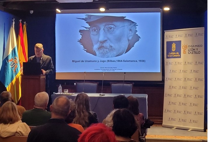 Con el fallecimiento en diciembre de 1936 España pierde al más importante intelectual de la Generación del 98. Amplio recorrido que González Padrón expone en su ponencia con proyección de imágenes en referencia a la biografía del que fuera Rector de la Universidad de Salamanca, Miguel de Unamuno, que forma parte de los personajes del ciclo Amigos de León y Castillo que desde la Casa Museo León y Castillo se imparte para la difusión cultural que mana de la voluntad institucional de progreso social y colaboración ciudadana desde la red de Casas-Museo dependientes de la Consejería de Cultura del Cabildo de Gran Canaria. Enhorabuena. Gracias.