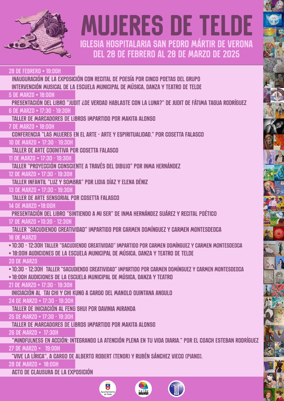 El Ayuntamiento de Telde, a través de la Concejalía de Cultura y la empresa pública Gestel, inaugura este viernes 28 de febrero la exposición colectiva Mujeres de Telde. Será en la Iglesia Hospitalaria San Pedro Mártir de Verona, a las 19.00 horas.