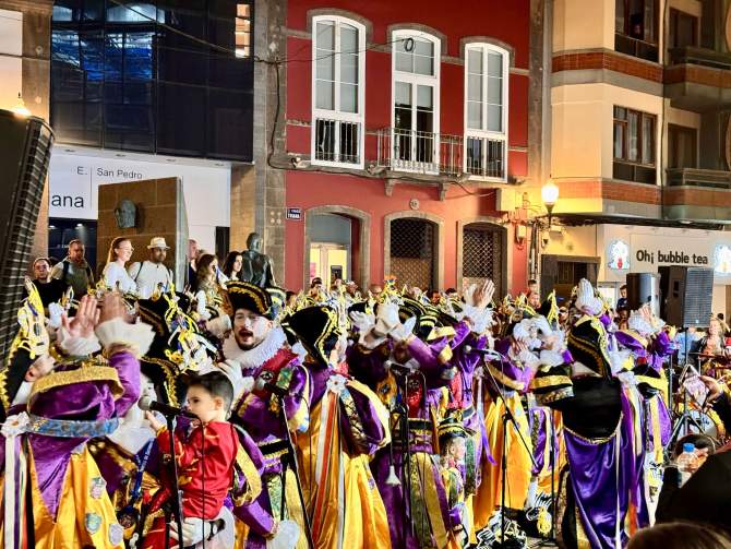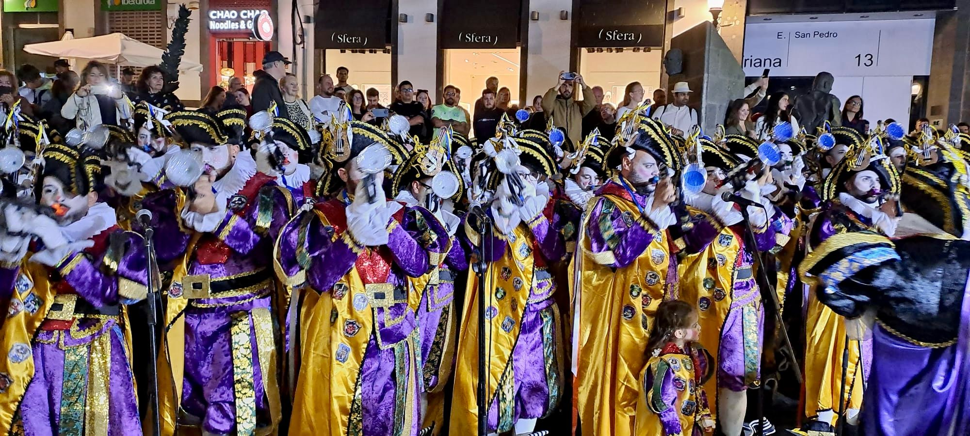 Tras recorrer la emblemática vía comercial y convertirse en el centro de atención del público, la murga ofreció una actuación en plena calle, rodeada de aficionados que corearon y aplaudieron su espectáculo.