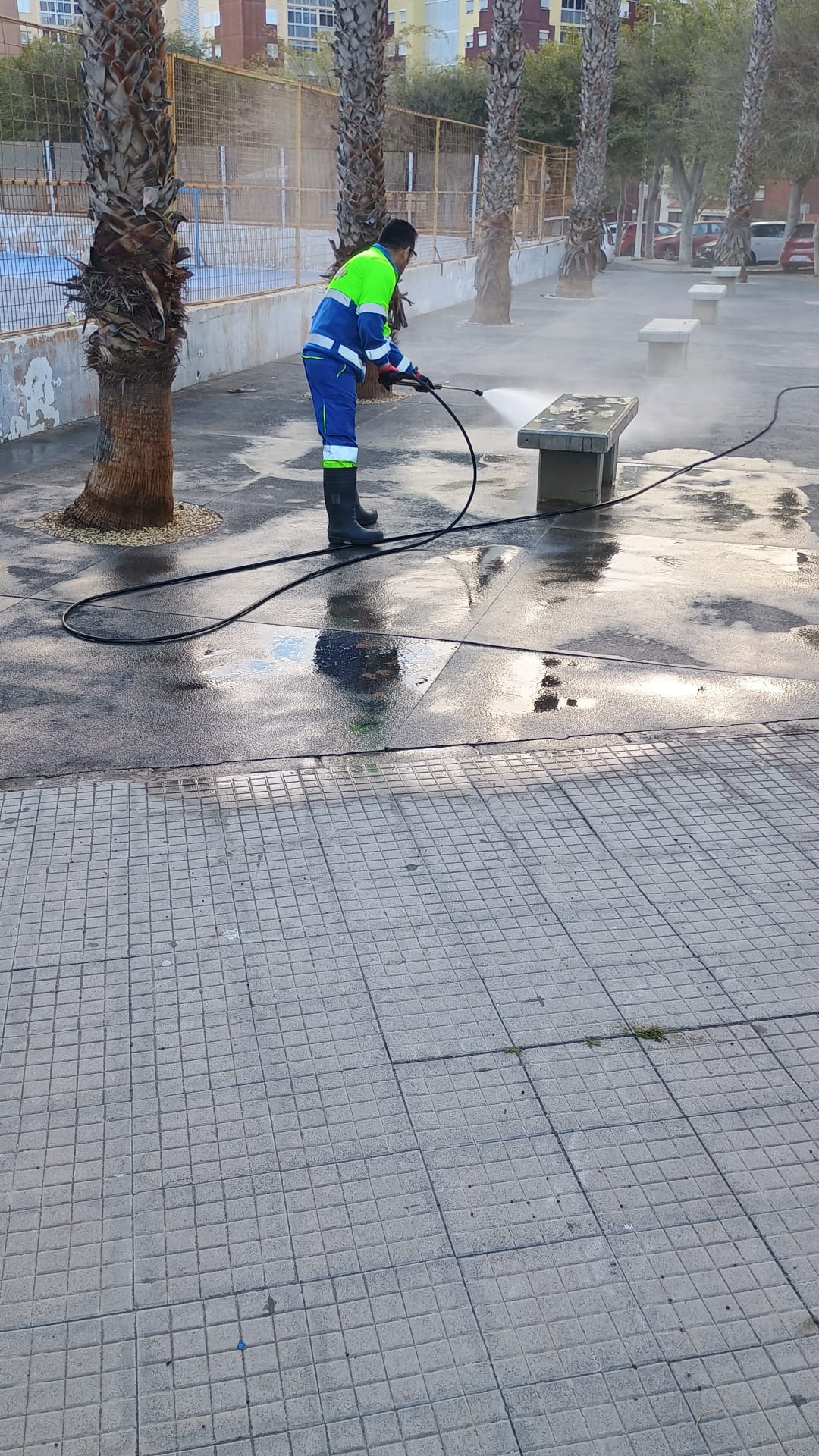 Desplegado de 6.00 a 13.00 horas, la jornada contó con un equipo conformado por 16 personas. María Calderín agradeció a la plantilla el esfuerzo realizado desde primera hora de la mañana para poder desarrollar labores de baldeo, barrido manual y mecánico, recogida de trastos, deshierbe y reparación de papeleras y contenedores Para optimizar las tareas realizadas, el grupo de trabajo contó con maquinaria especializada como una barredora, un hidrolimpiador y una desbrozadora, entre otras.