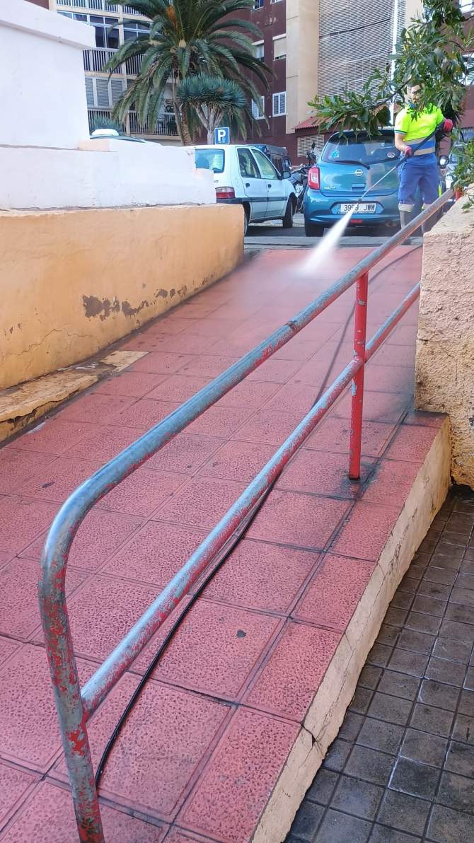La Concejalía de Limpieza Viaria y Recogida de Residuos del Ayuntamiento de Telde, que gestiona María Calderín, realiza la primera jornada intensiva en Eucaliptos I. Una actividad que persigue reforzar las labores habituales de adecentamiento que se llevan a cabo en este barrio.
