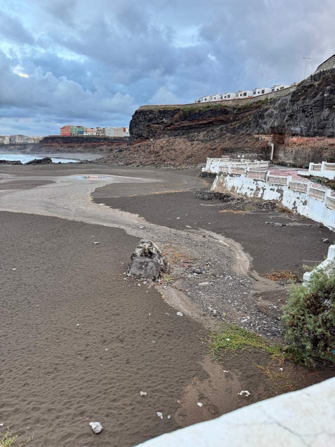 Sin embargo, uno de los efectos más notorios ha sido la llegada de aguas fecales a la arena de la playa de Salinetas, procedentes de un aliviadero de la red de alcantarillado que vierte el líquido al barranquillo que desemboca en esta cala teldense.