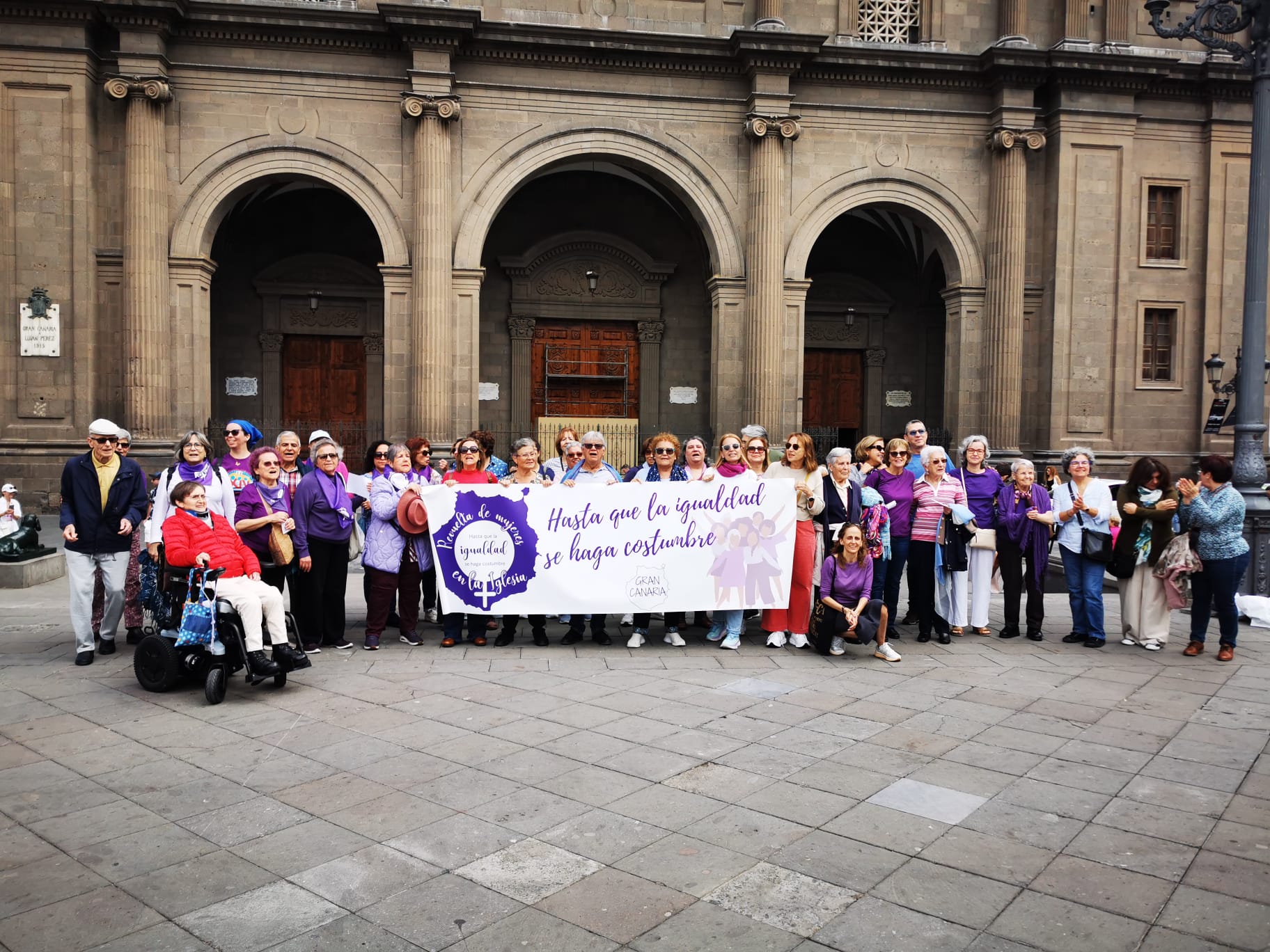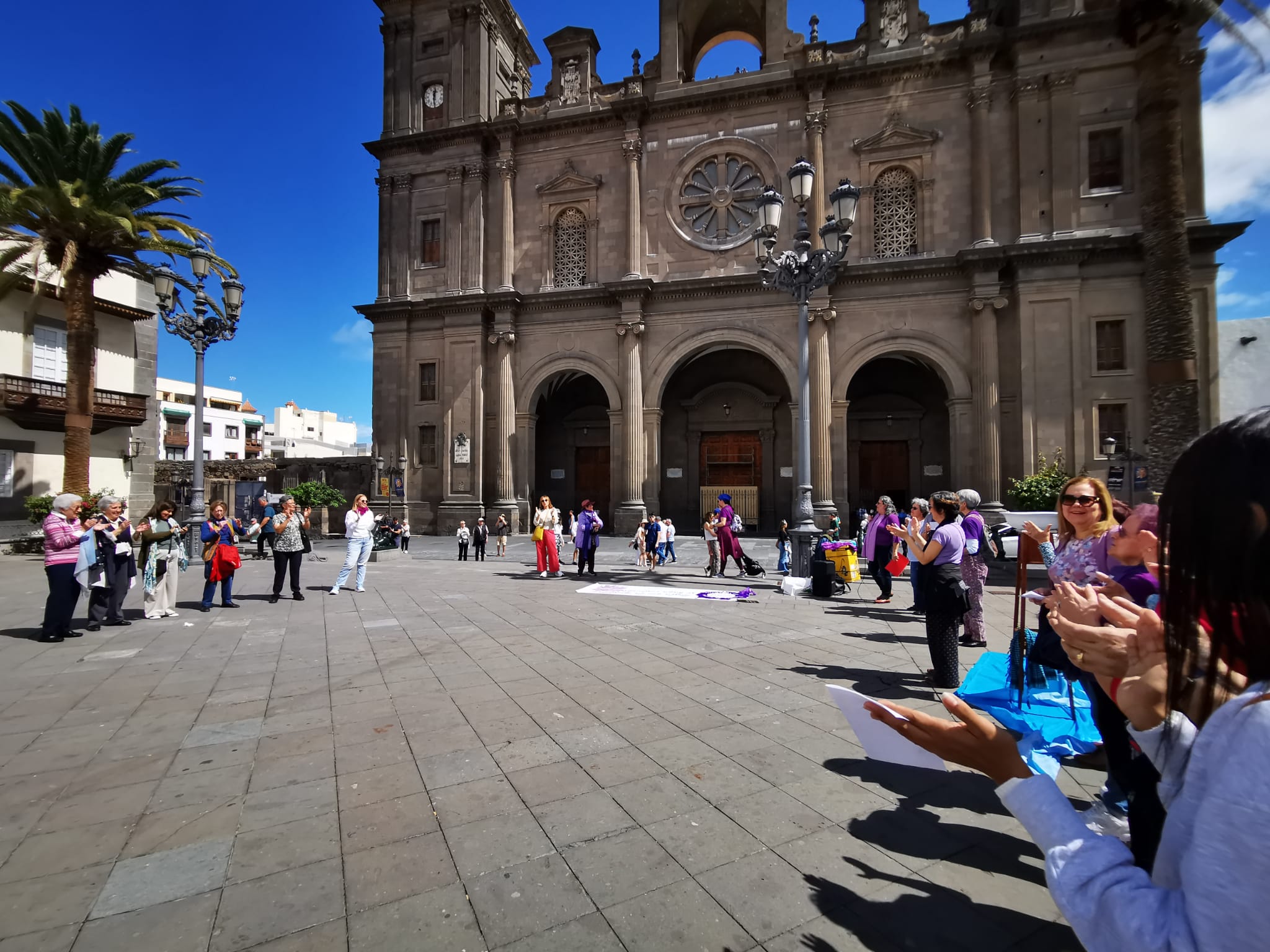 Al unísono con la canción 'Yo no renuncio' de Rozalén, proclamaron la danza de la Igualdad: “Aquí la revuelta un año más/ traemos semillas de igualdad/ sembrando en la cumbre, cogiendo en el mar”, fue una de los estribillos coreados por todas. Coincidiendo con varias decenas de catedrales de España, las canarias expresaron en su comunicado “en el marco de las jornadas feministas del ocho de marzo, las mujeres de movimientos y comunidades, salimos en la calle este domingo para alzar nuestra voz y decir que queremos estar en la Iglesia en igualdad”.