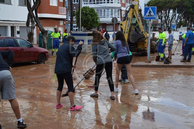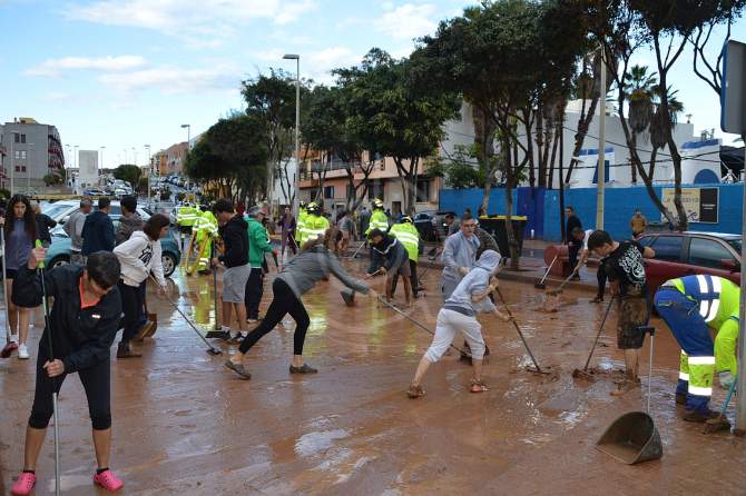 La fuerza del agua no ha podido con la solidaridad de los vecinos de Salinetas, que han salido a la calle con palas y cepillos para colaborar en la limpieza tras la fuerte riada que anegó la zona. Una labor a la que se han sumado el alcalde Juan Antonio Peña , los ediles del Gobierno municipal Iván Sánchez, Juan Francisco Jiménez, Adela Álvarez, Janoa Anceaume, Miguel Rodríguez y Cristhian Santana y varios asesores.