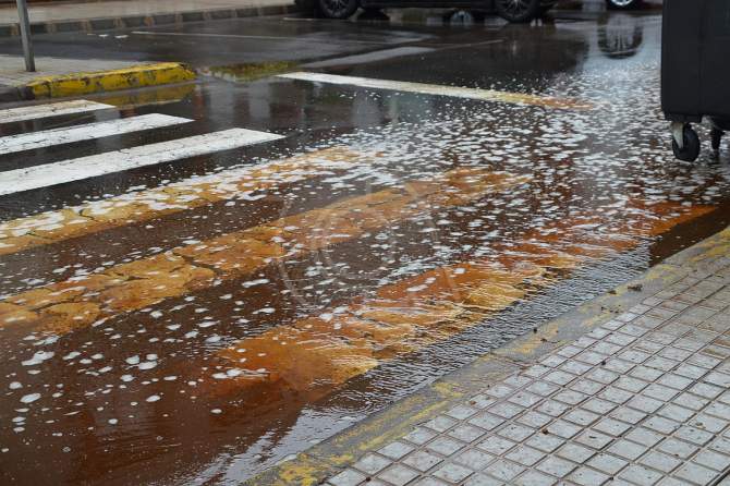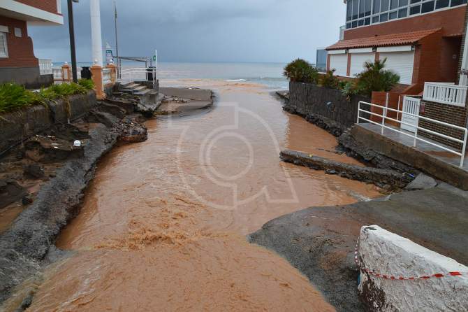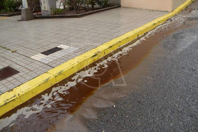 El vertido, cuyo origen aún no ha sido confirmado por las autoridades, desciende calle abajo en dirección a La Barranquera, donde acaba colándose por un imbornal de recogida de aguas pluviales y sumándose a la escorrentía del barranquillo que desemboca en la playa.