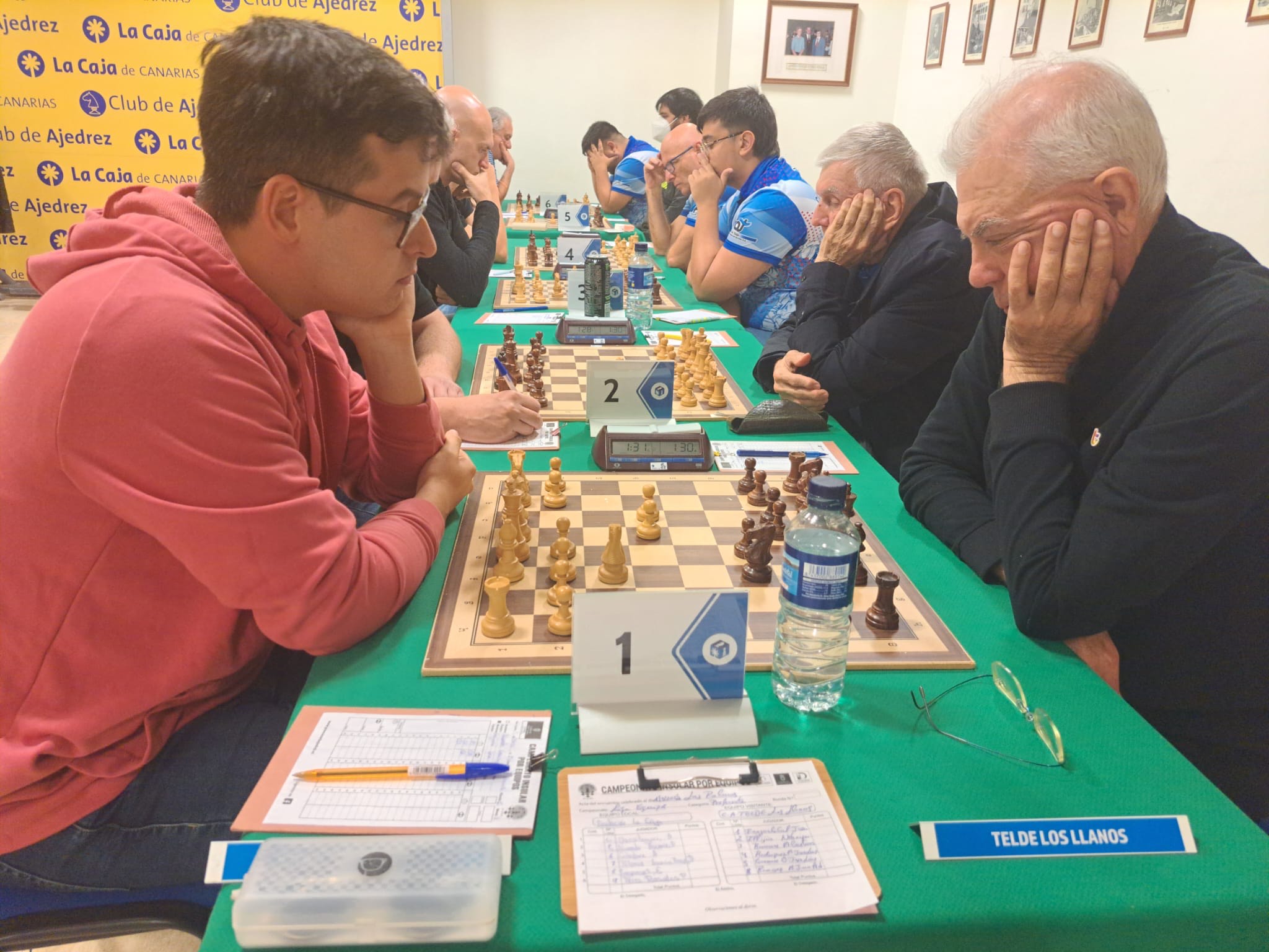 El Club Ajedrez Telde los Llanos da la sorpresa y consigue un empate por 3 a 3 contra el líder, el C.A. Fundación la Caja Las Palmas. En el primer tablero del Telde A, el maestro internacional canario José Miguel Fraguela no pudo ante el maestro Fide Alejandro Uzcategui, mientras que en el segundo tablero el jugador teldense Neboisa Illijin Maestro Internacional Rumano, consiguió unas meritorias tablas contra el rocoso jugador Francisco Alvarado.