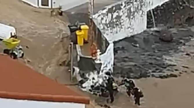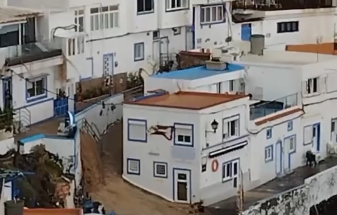 En Tufia, las estrechas y empinadas calles se transformaron en auténticos ríos, con el agua fluyendo rápidamente hacia el mar, como se puede apreciar en este video que un vecino de la zona remitió a TELDEACTUALIDAD.