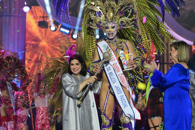 La alcaldesa de Las Palmas de Gran Canaria, Carolina Darias, fue la encargada de entregar el cetro al vencedor del certamen, junto a la concejala de Carnaval, Inmaculada Medina, y el Drag Queen de la edición de 2024, Elektra (Iván Sánchez Pérez), en los momentos más emocionantes de la noche.