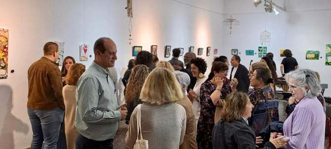 Telde acogió ayer viernes la inauguración de la exposición de la artista multidisciplinar Esther Coco, una muestra que se enmarca dentro de la programación cultural de marzo, dedicada a la visibilización del talento femenino en el arte y la cultura. La exposición, que se podrá visitar hasta el 30 de marzo en las Casas Consistoriales, reúne una colección inédita de pinturas y diseños exclusivos de joyería en plata y latón, tal y como había anunciado TELDEACTUALIDAD.