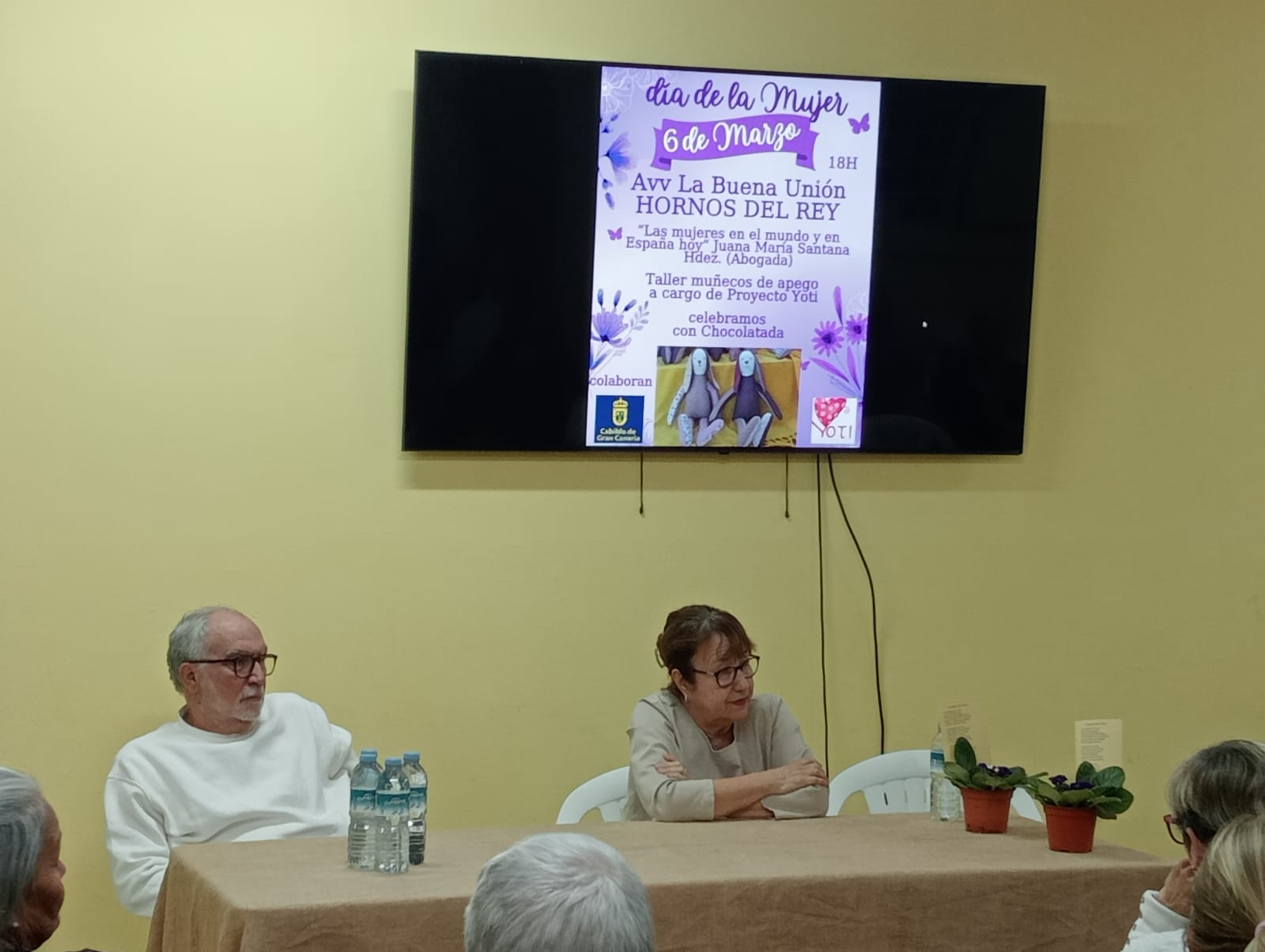 Juana Santana abrió el encuentro con una charla sobre la situación de las mujeres en el mundo, destacando los logros alcanzados y los riesgos de retrocesos en derechos. Tras un interesante debate y tertulia, tuvo lugar un taller organizado por la Asociación YOTI, en el que se elaboraron muñecos de apego (en tela) destinados a niños y niñas en centros de menores o víctimas de violencia de género.