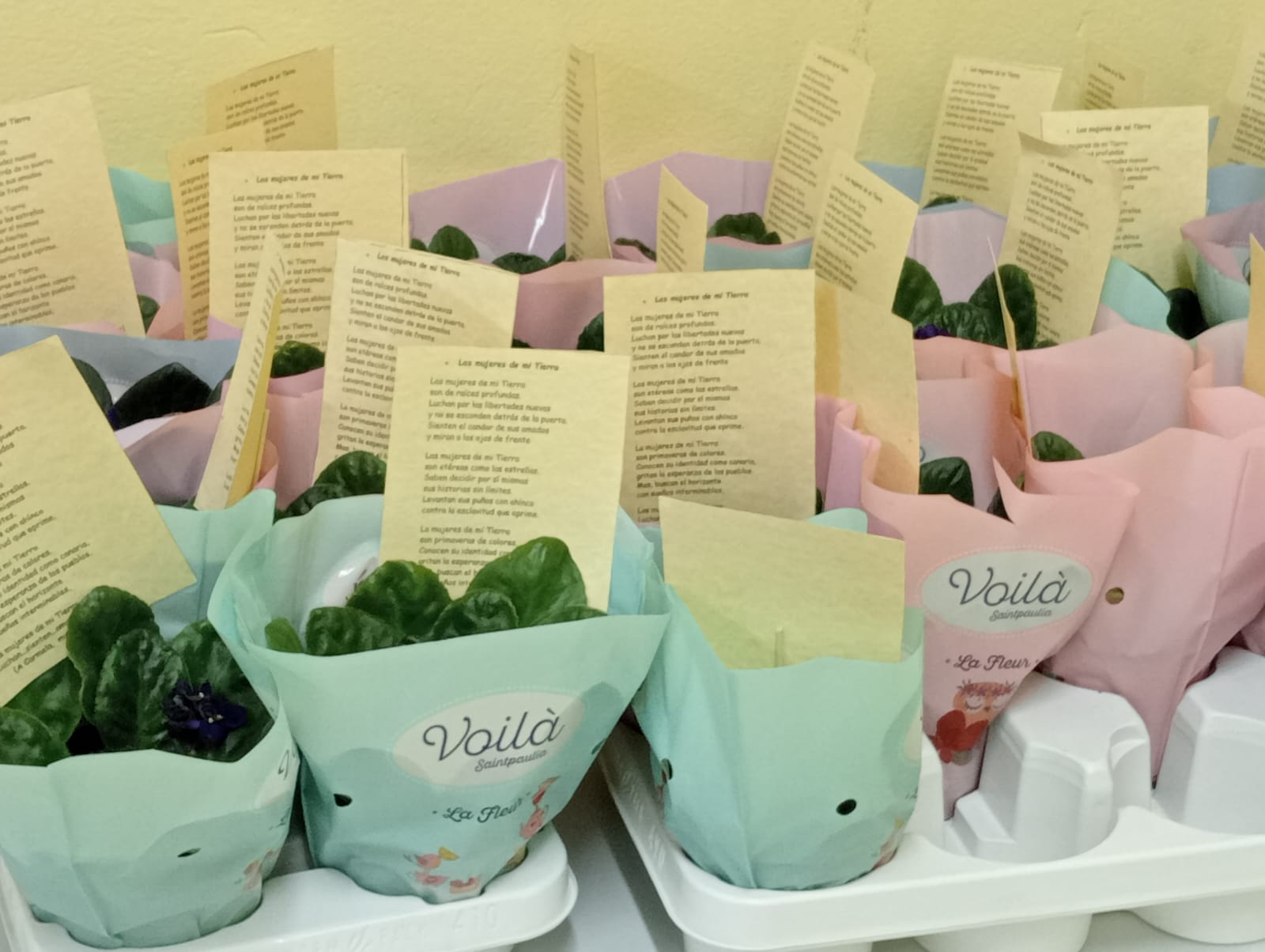 Como detalle especial, todas las asistentes recibieron una violeta lila, símbolo del color feminista, y un pergamino con un poema dedicado a la mujer canaria, autos Pedro Galván.