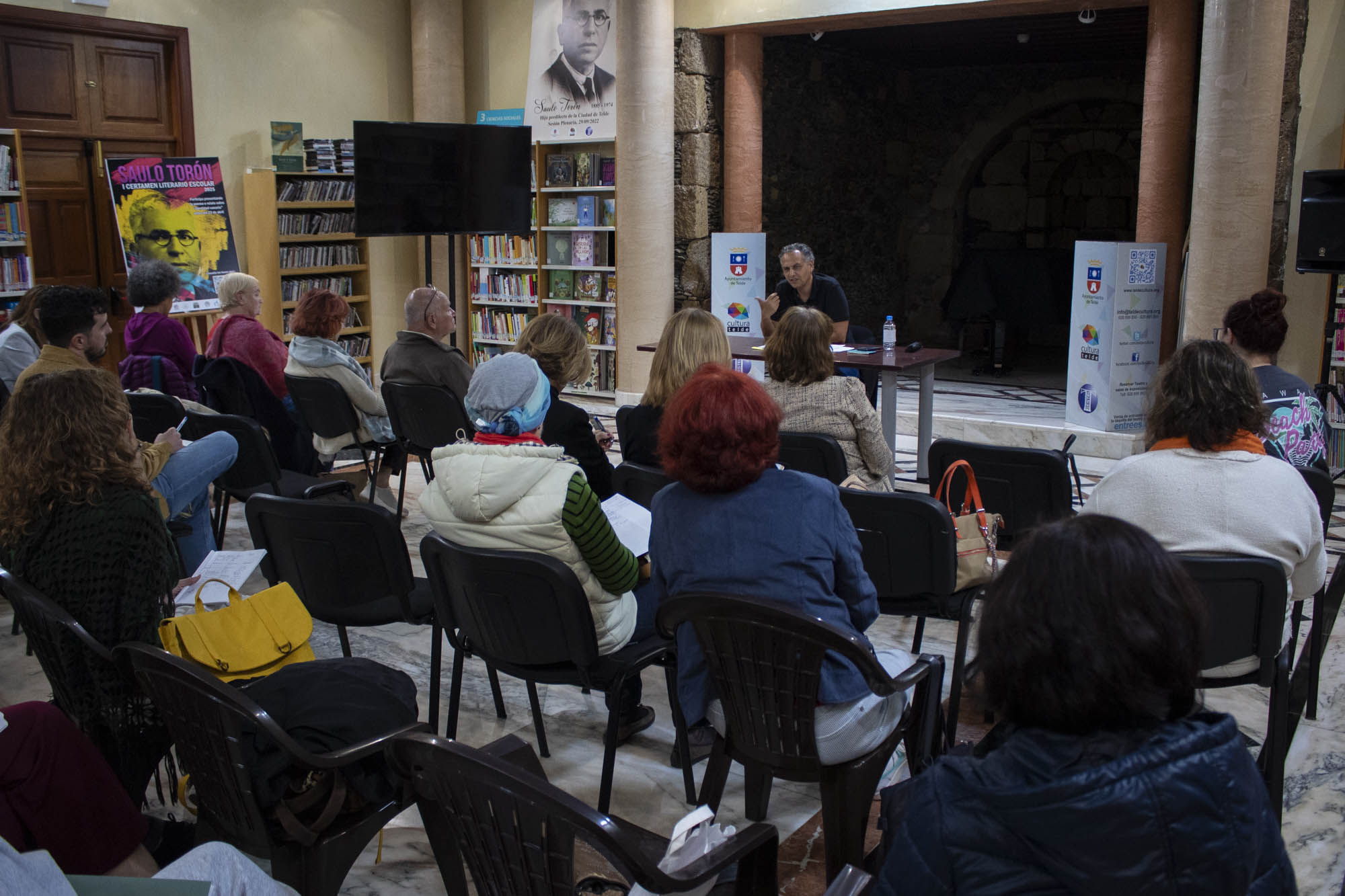 El taller está impartido por el periodista y escritor, Santiago Gil/Iris Morales/TA.La Biblioteca Saulo Torón, ubicada en el Parque Arnao, acogió este martes una nueva sesión del taller de escritura impartido por el periodista y escritor canario Santiago Gil.