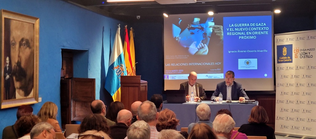 Debo agradecer a todos los componentes y muchos que han vuelto como es el caso del catedrático que hoy nos acompaña, doctor Gustavo Palomares Lerma en su tercera asistencia en estos cursos. La visión de este año como de costumbre nos permite oír alguna de las voces más autorizadas del momento para hablar de las cuestiones que nos ocupan y preocupan en estos momentos a todos los internacionalistas”.