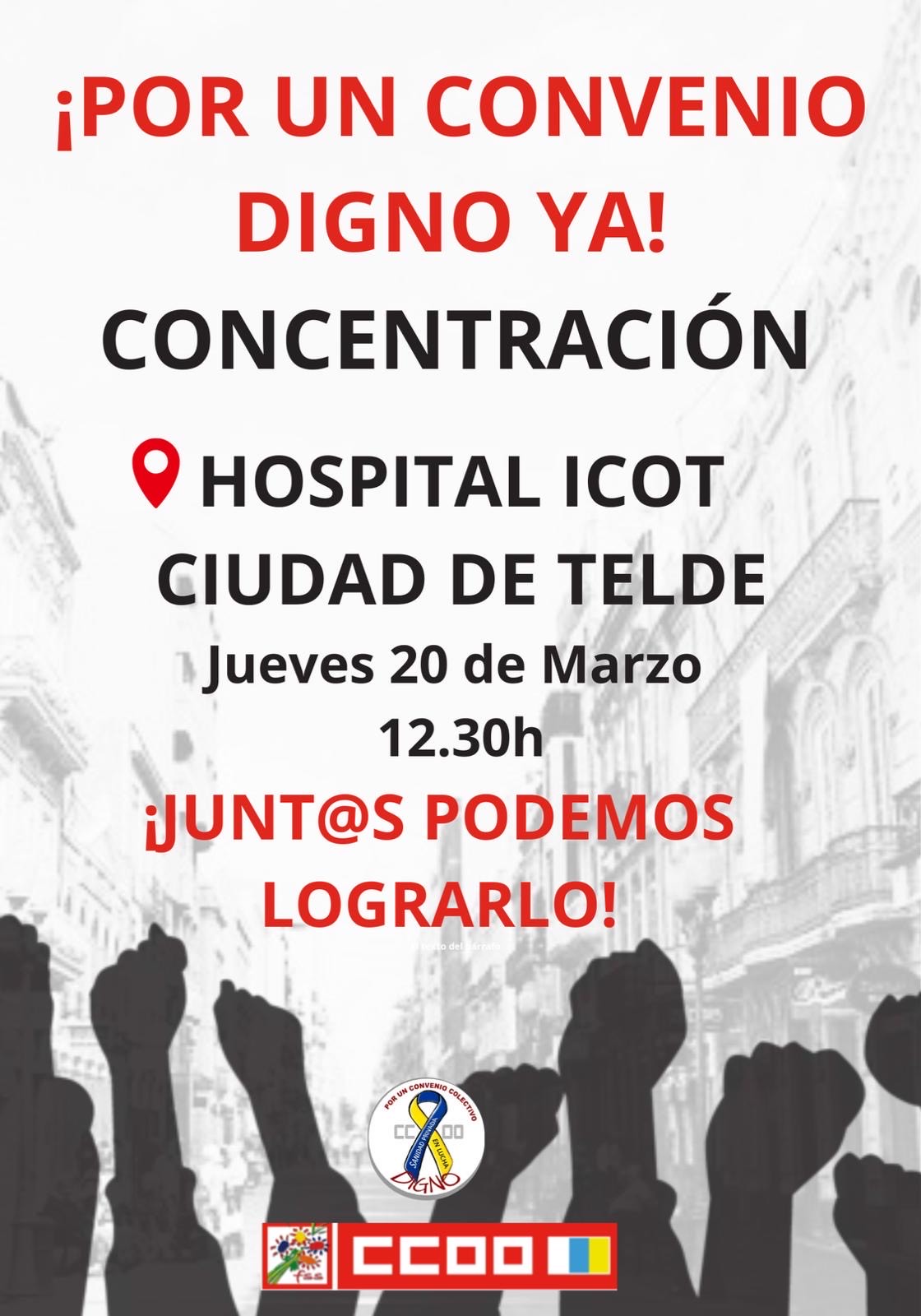 El Hospital Icot de La Estrella, en Telde, será el escenario este jueves, a las 12.30 horas, de la primera de una serie de concentraciones de protesta ante "la actitud pasiva de la patronal de clínicas privadas de la provincia de las Palmas para avanzar en la negociación del convenio colectivo", denuncian los sindicatos.