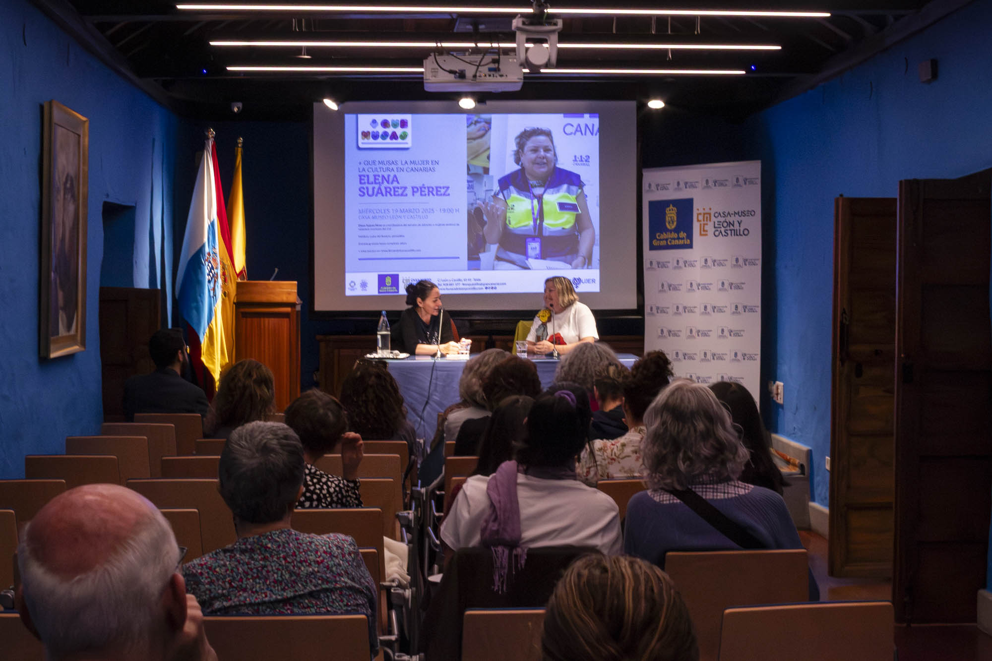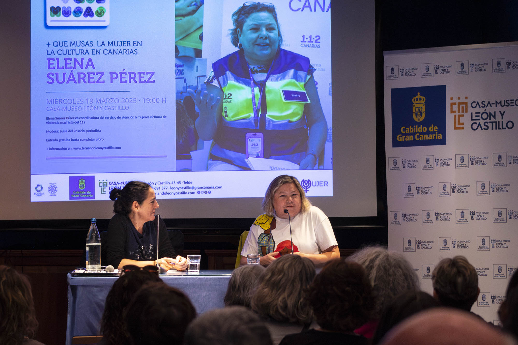 La Casa-Museo León y Castillo de Telde se convirtió anoche en un espacio de reflexión y reconocimiento a la labor de Elena Suárez Pérez, trabajadora social y activista feminista, en una nueva sesión del ciclo ‘Más que Musas’, coordinado por la periodista Nora Navarro.