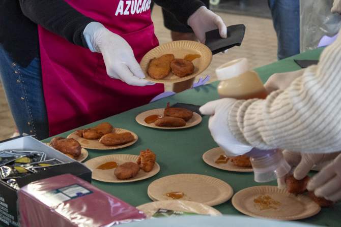 Uno de los momentos más sabrosos de la jornada lo protagonizó el colectivo El Roque Azucarero, que ofreció una deliciosa degustación de tortillas de carnaval —también conocidas como tortillas de calabaza—, elaboradas de forma artesanal y servidas con un toque de miel. En total, se repartieron 18 bandejas que volaron en menos de hora y media.