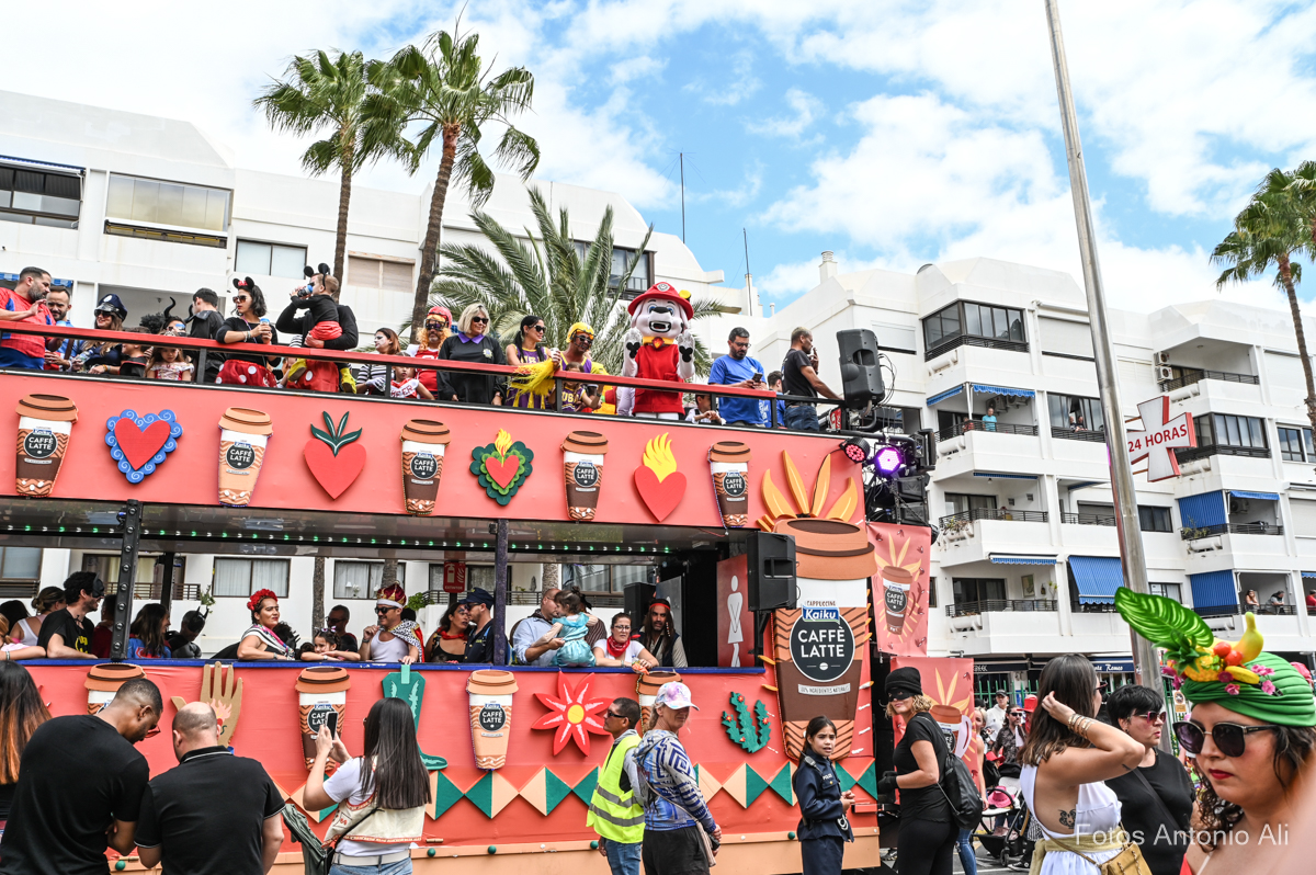 La Avenida de Tirajana de Playa del Inglés se llenó de color en la mañana de este domingo, 23 de marzo, con el desarrollo de la Cabalgata Infantil. Acto que ya es un éxito pese a contar con solo tres ediciones, la primera celebrada en 2019 no tuvo continuidad pero fue rescatada en 2024 por la concejala de Turismo, Eventos y Festejos, Yilenia Vega, que, además, en esta edición ha apostado por su unión con el novedoso Carnaval de Día en el CC Yumbo. La sinergia entre ambos eventos ha posibilitado que los miles de asistentes disfrutaran plenamente de este primer domingo carnavalero del sur.