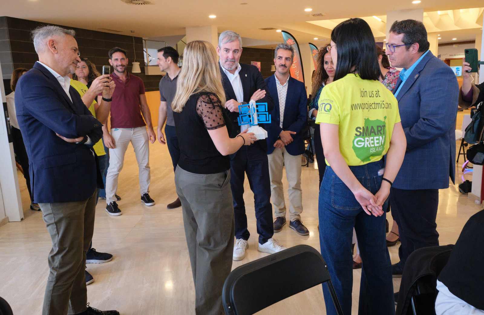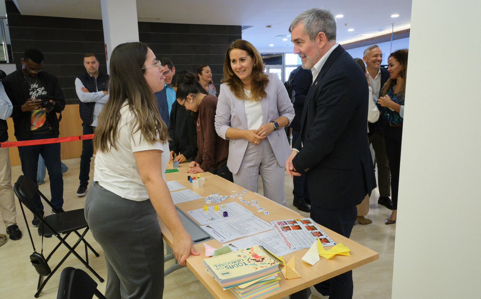 El presidente de Canarias, Fernando Clavijo, junto a la presidenta del Cabildo de Fuerteventura, Lola García, la consejera Migdalia Machín y el director de la ACIISI, Javier Franco Hormiga, han visitado este viernes el Palacio de Formación y Congresos de Fuerteventura donde se desarrollan las más de 50 actividades de divulgación científica para la ciudadanía enfocadas a despertar vocaciones científicas, visibilizar el talento canario y ofrecer acceso directo al conocimiento de primer nivel.