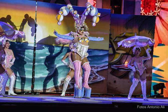 Rompió el hielo Drag Shirah, representando al Ilustre Ayuntamiento de la Vega de San Mateo con diseño de Israel Arbelo, Carla Domínguez y Aran Perdomo y la fantasía: “Renacer, no soy un monstruo, soy su creación” en alusión a Medusa. El público ya estaba totalmente entregado cuando en segundo lugar salió el Primer clasificado, Drag Gio, en representación de Clínika Beach, Farándula y Winter Pride Maspalomas, diseño de High Heels Performance y la fantasía: “Si lo vas a hacer ¡Hazlo épico!”. Tras él, Drag La Tacones con su fantasía “Honor y Gloria” de Masbe Creaciones y representando a Carrozas José Halcón.