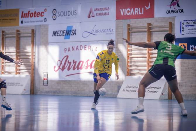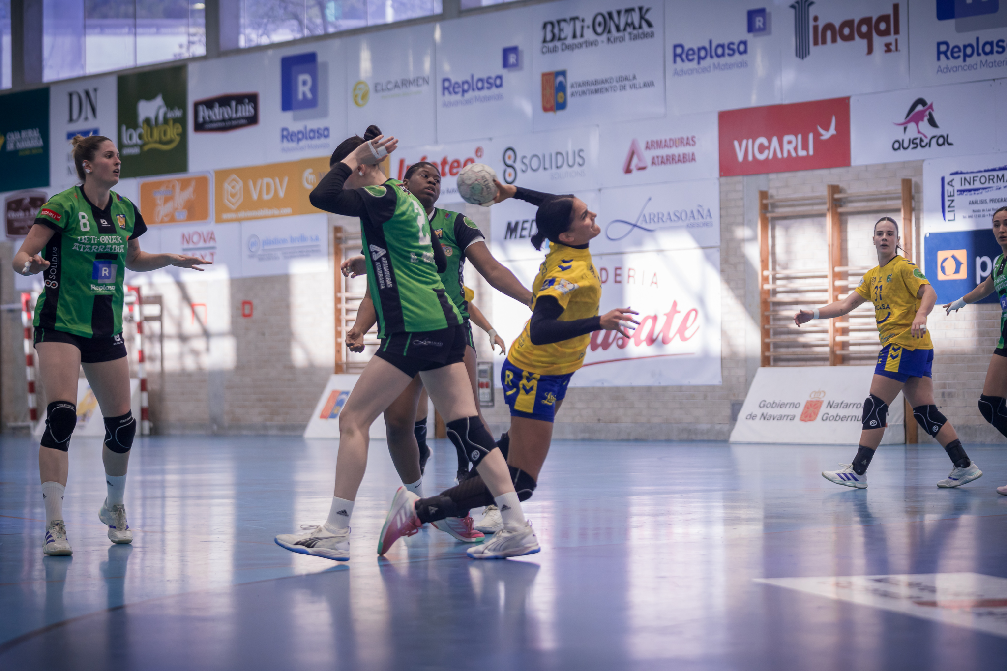 Imagen del encuentro de este sábado/Daniel Asiaín Belfont Studio.El Rocasa Gran Canaria sumó este sábado una victoria de oro en uno de los partidos más exigentes de la temporada, imponiéndose por un ajustado 23-24 al Replasa Beti Onak en el Polideportivo Hermanos Induráin de Navarra. Las grancanarias sacaron adelante un choque igualadísimo, con una defensa firme, la experiencia bajo palos y un último minuto de auténtico vértigo que les permite afianzar su sexta posición en la tabla con 25 puntos.
